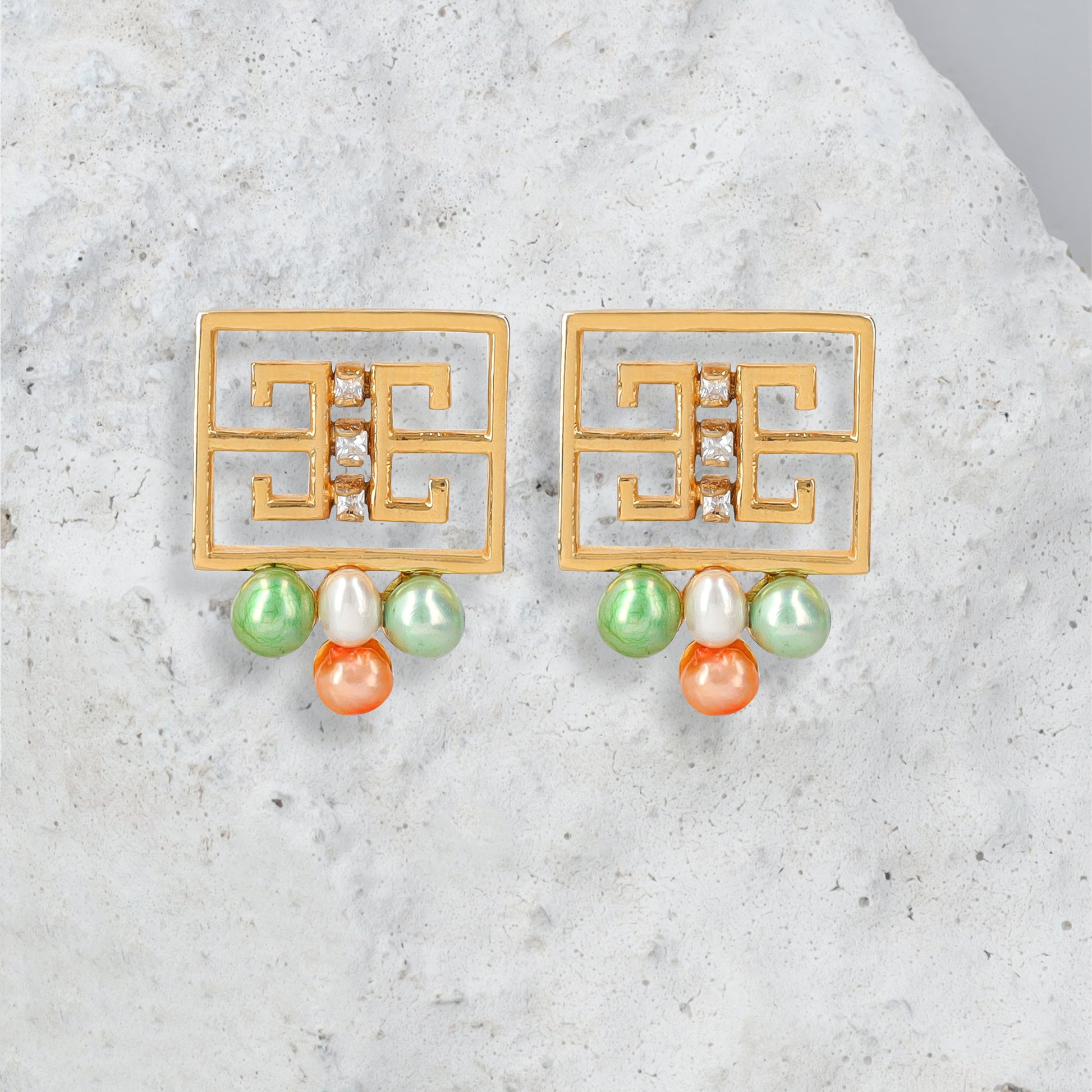 Add a touch of ethereal elegance to your jewelry collection with the Agape Earrings. The classic combination of orange and green Baroque freshwater pearls exclusively handpicked for you. Pair with the matching necklace to complete your look!