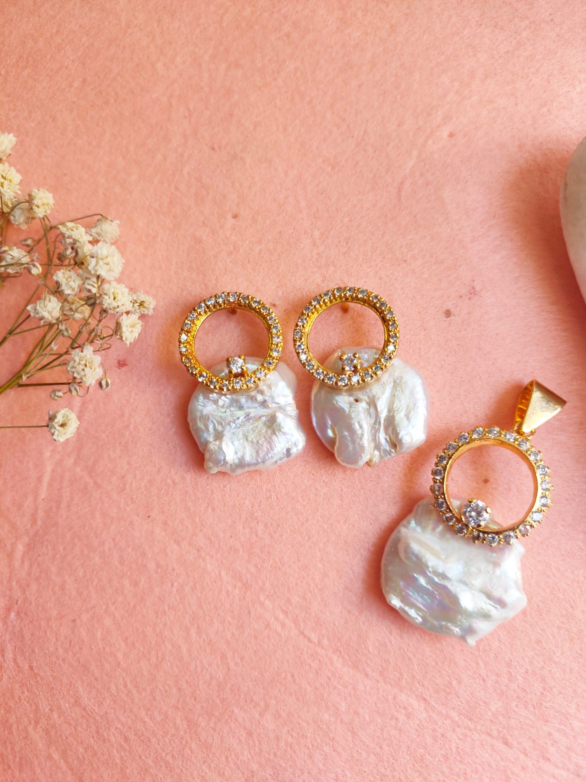 A celebration of elaborate embellishments. This exuberant earrings and pendant set has been handcrafted intricately on 925 Sterling Silver adding a flair of modern charm.