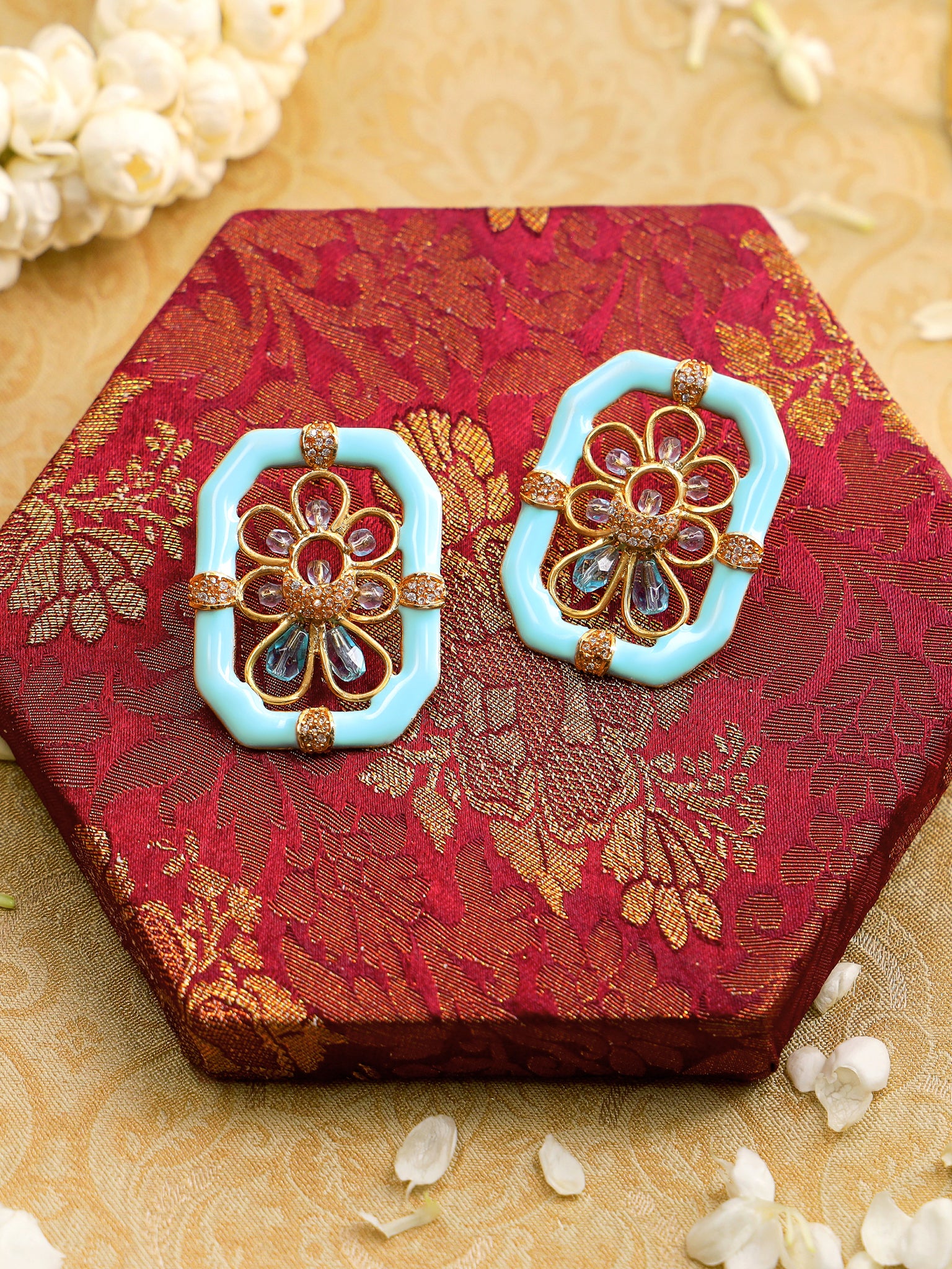 Sparkle with style in these 21K gold-plated earrings! Featuring handpainted details and dazzling zircons, each pair is a one-of-a-kind masterpiece that adds a pop of charm to your look.