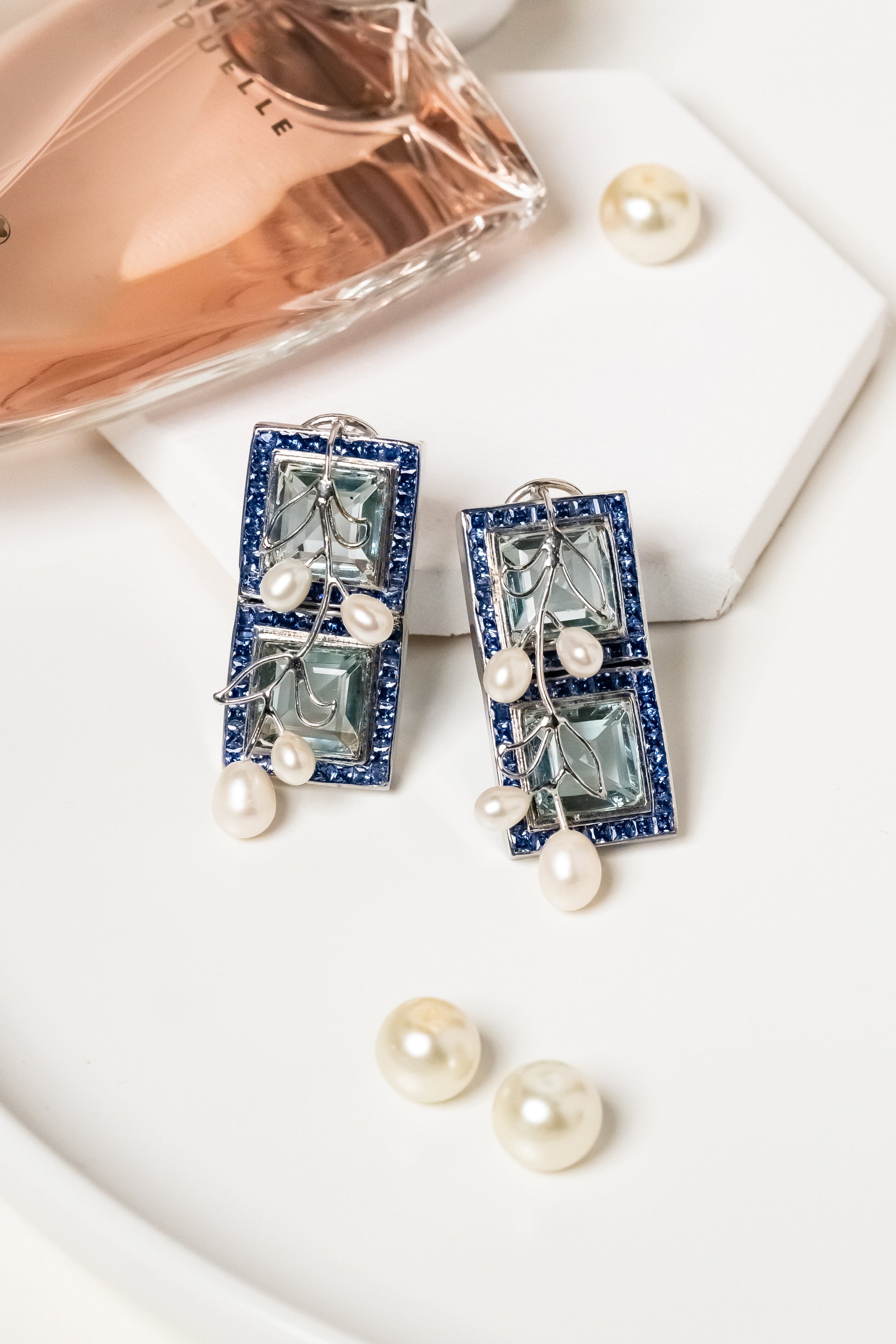 So soft yet so contrasting. A beautiful combination of soft and dark blue stones which is further enhanced with the pearly vines.