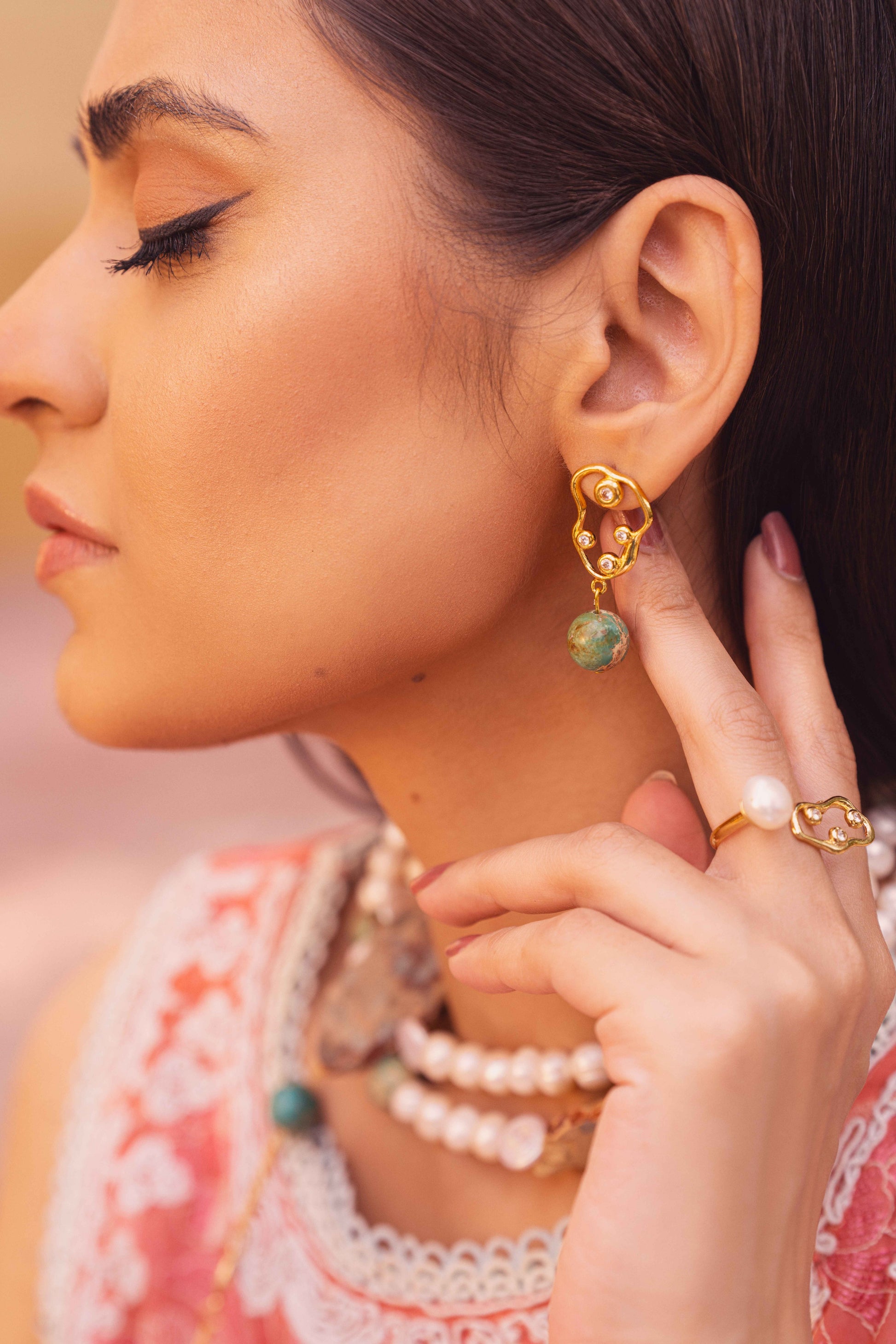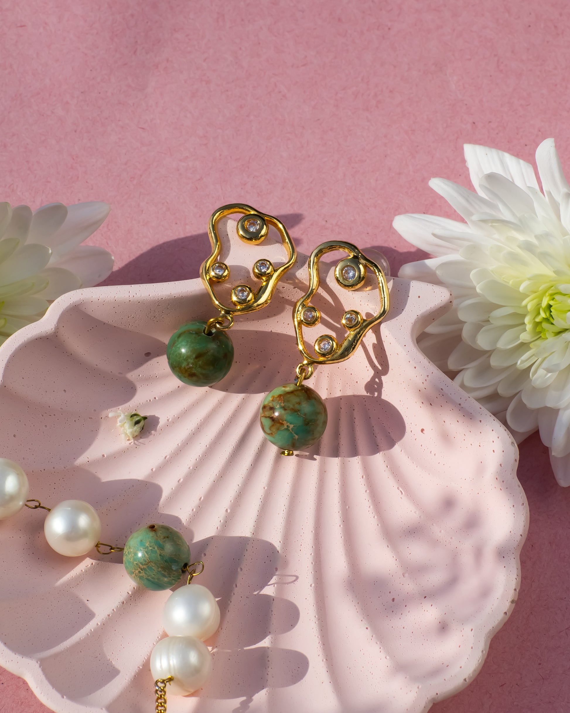 The evergreen earrings with hand-picked Natural Variscite paired with Real Freshwater Potato Pearls is the heirloom to be passed from generation to generation. Pair with the matching necklace to complete your look!