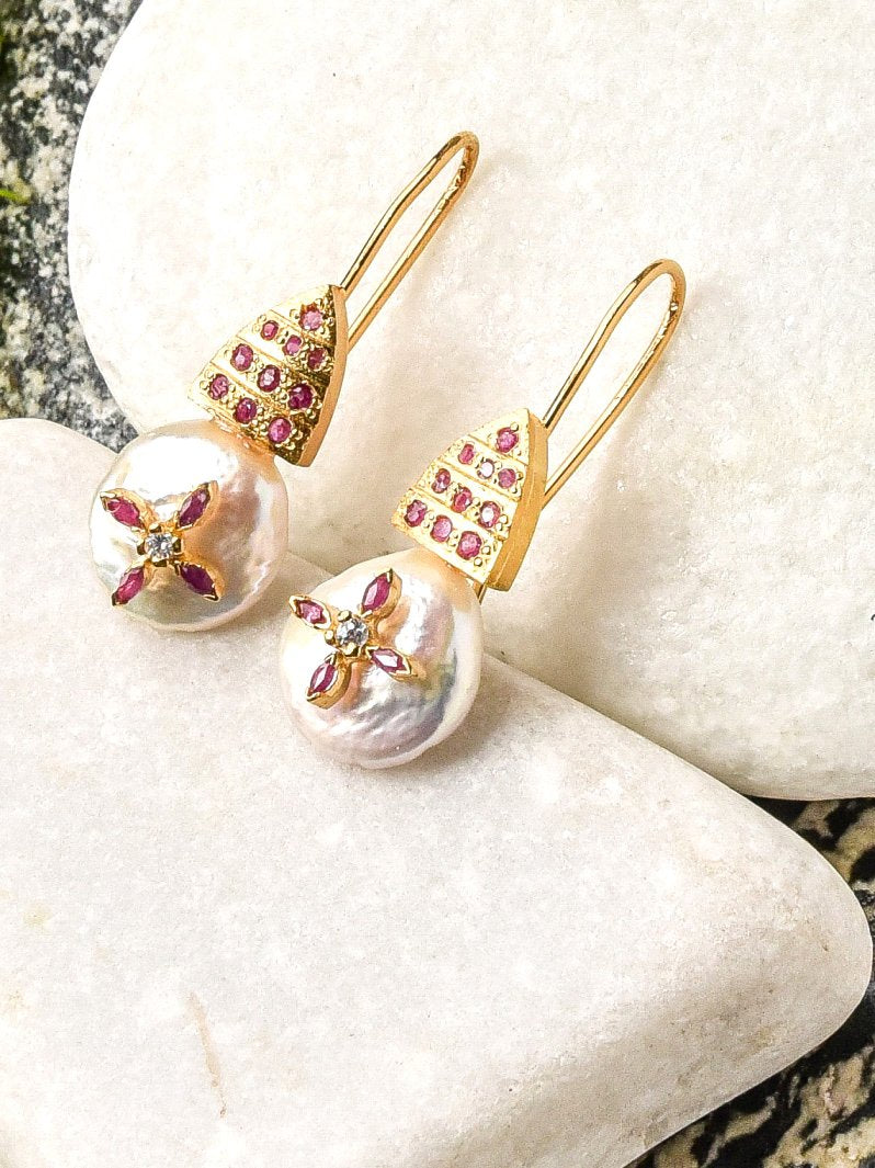 While it's true that diamonds are a girl's best friend, flowers cannot be ignored either - and the Floral Love Earrings are a delight for you. A mesmerizing pair of earrings with Red Ruby Flower.
