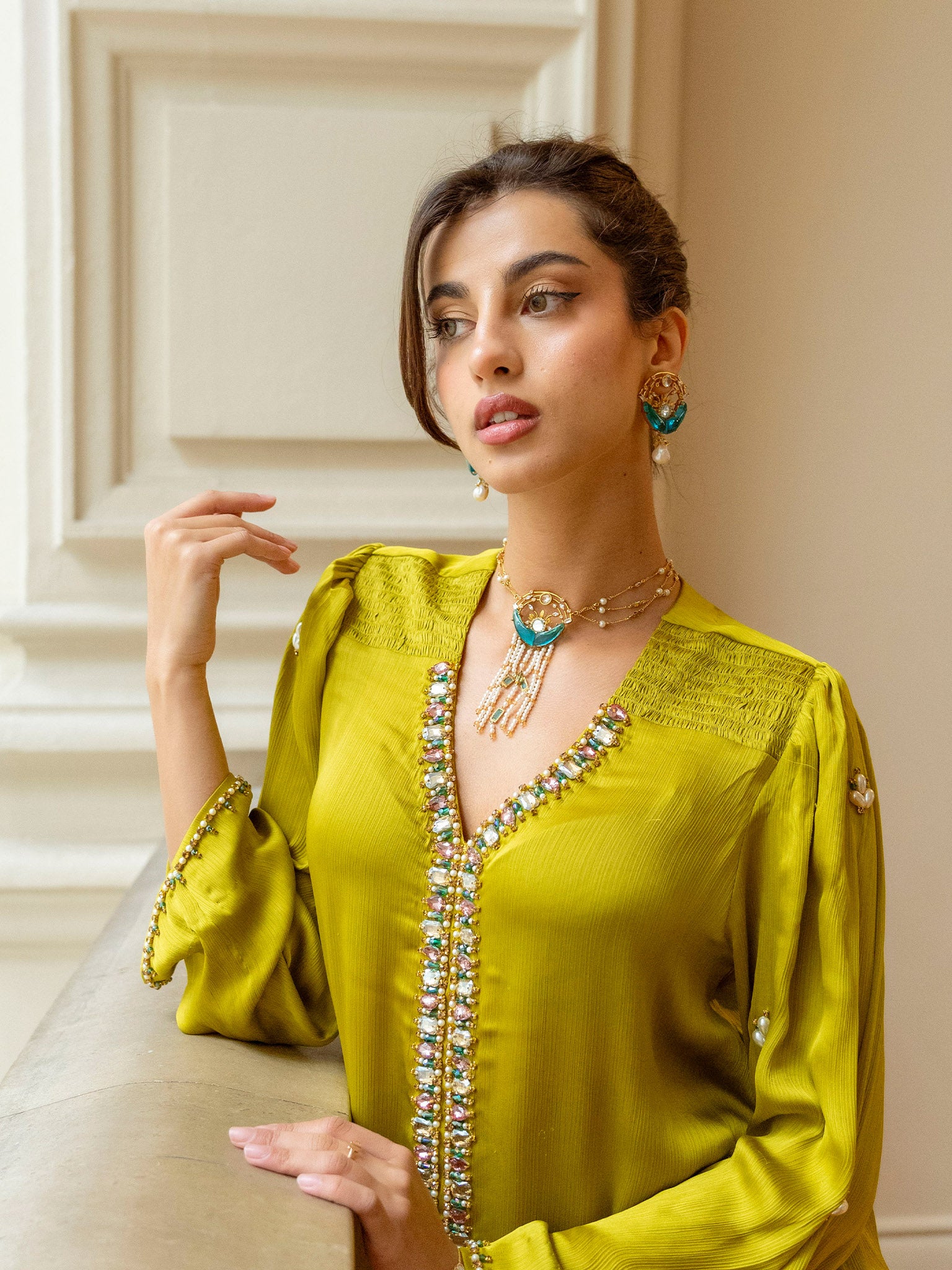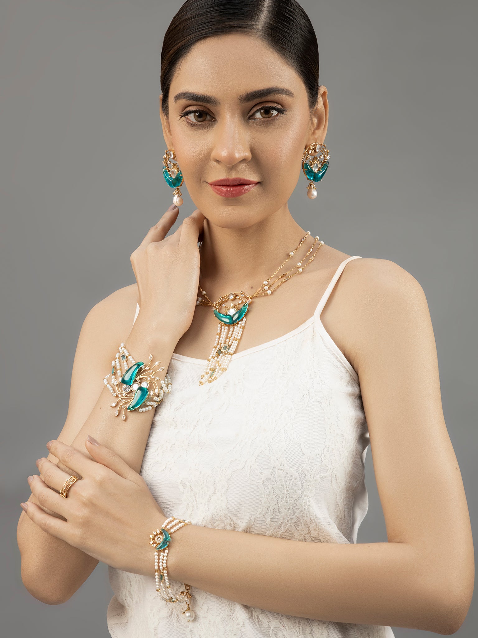 Captivate your inner magic with the teal hues in the handcrafted symphony of Tealing Glit - where elegance meets opulence. Choose from the statement chandelier earrings or chunky studs to complete your look and leave a charm wherever you go!