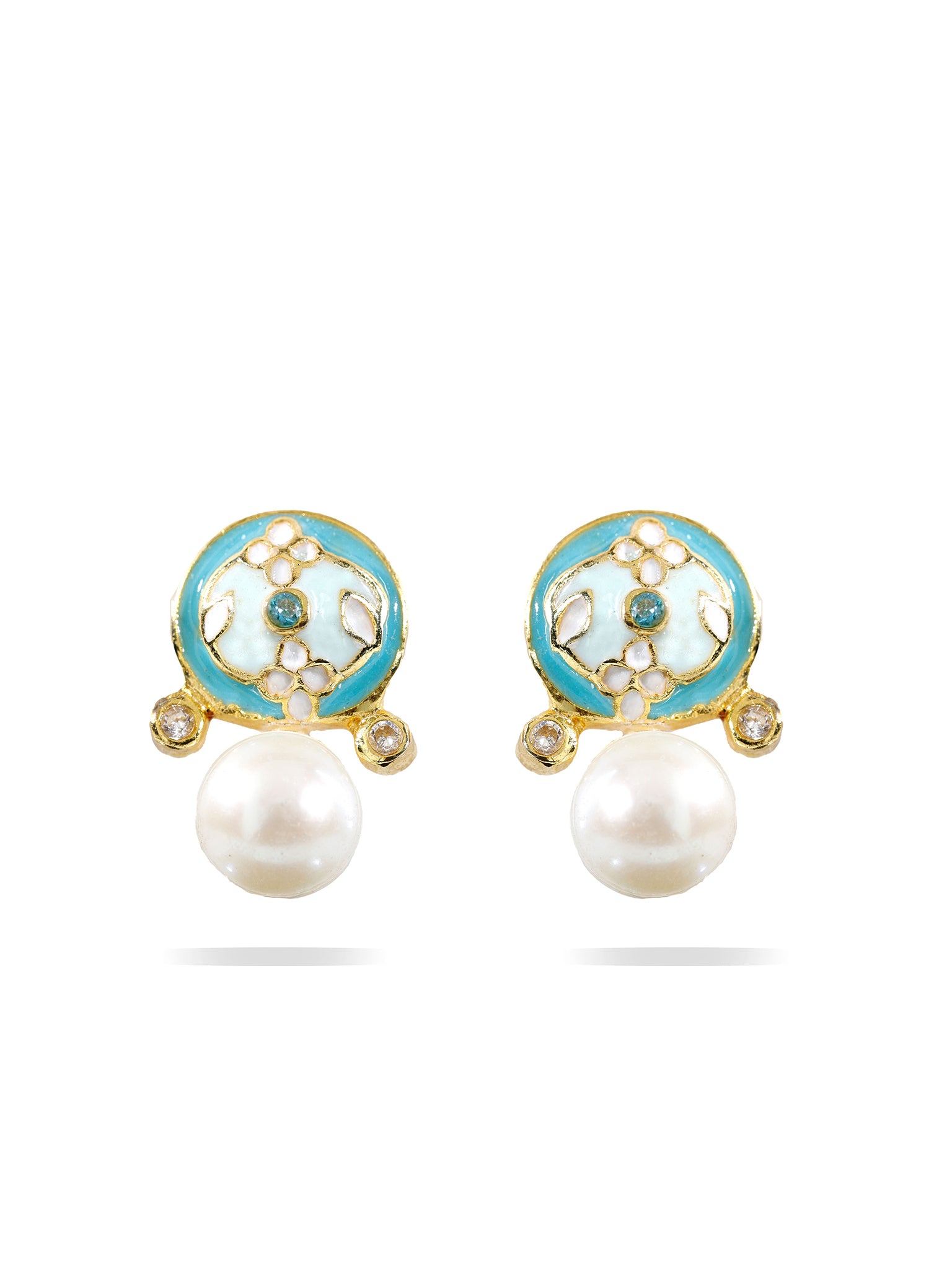 A refreshing take on, the Begonia Breeze earrings features a delicate floral motif set in tranquil turquoise enamel, accented with a radiant pearl drop and subtle golden details. Light, graceful, and effortlessly elegant—it's a piece that captures the calm beauty of a spring morning, perfect for someone who brings peace and warmth wherever they go.