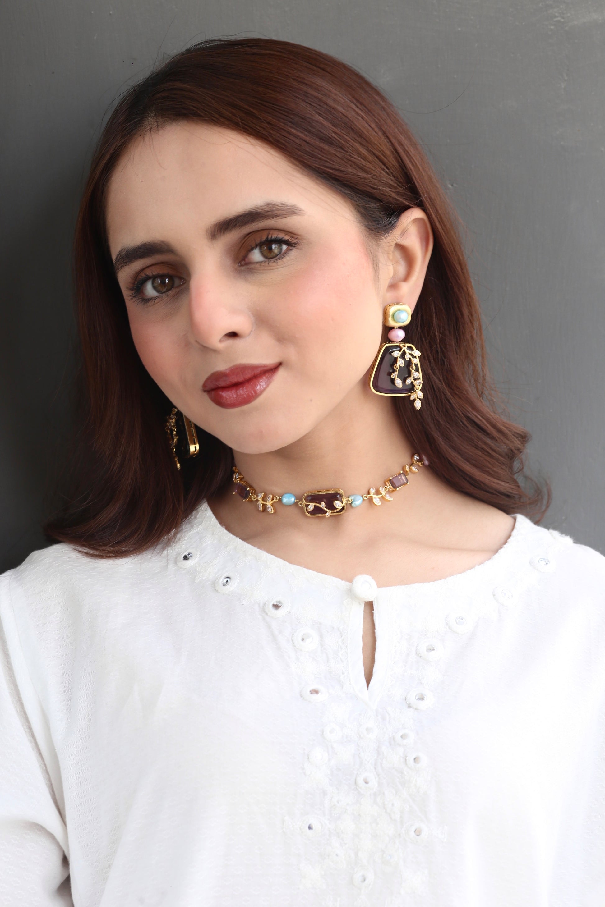 The Silken Tide Flower Choker traces the neckline with intricate floral motifs, radiant
