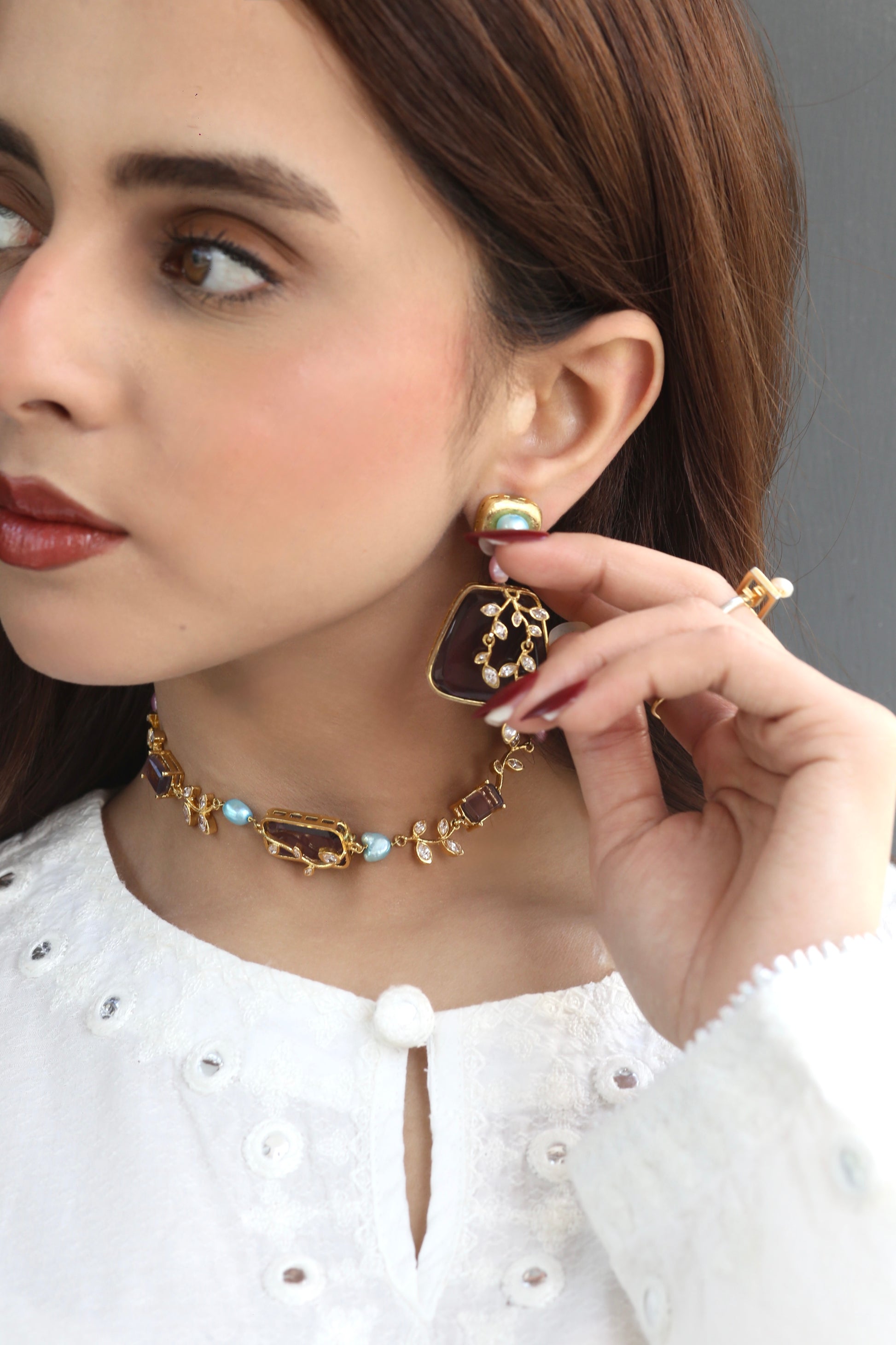 crystal stones, and luminous pearl accents. Designed to sit elegantly at the