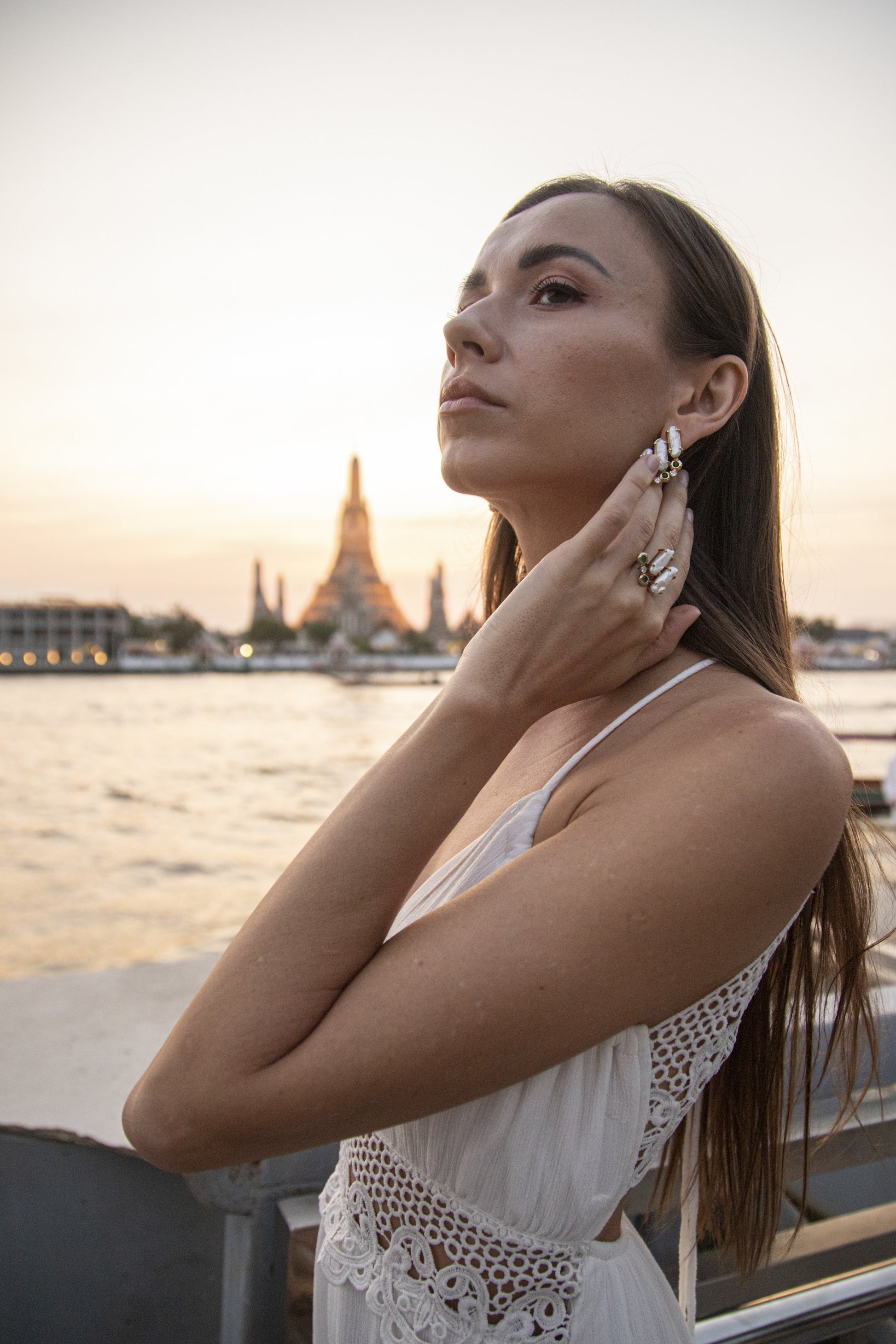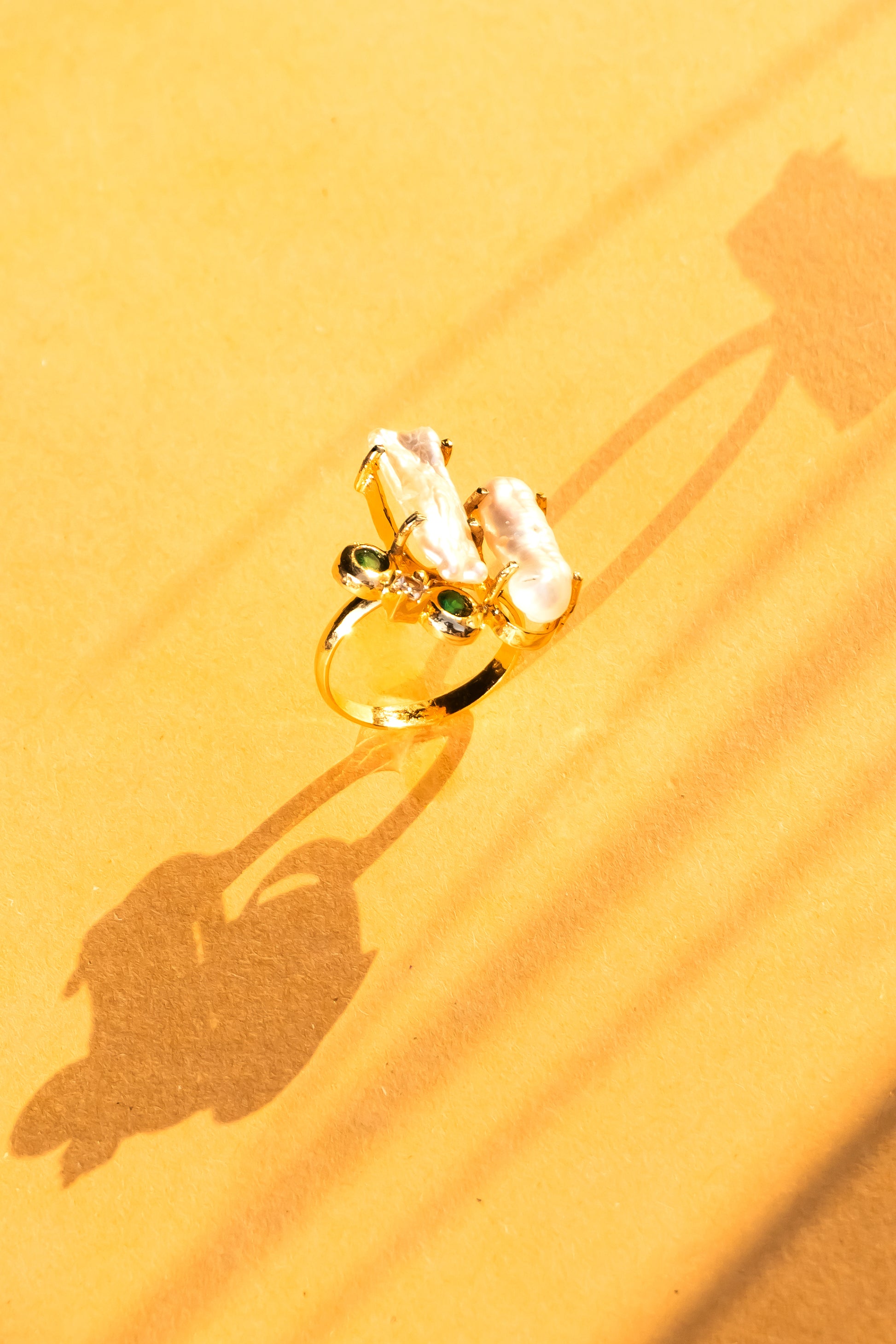 Pair up the irresistible Green Ivy ring with matching earrings designed with Green Crystals Stones and Real Freshwater Biwa Pearls, enough bling to make a statement.
