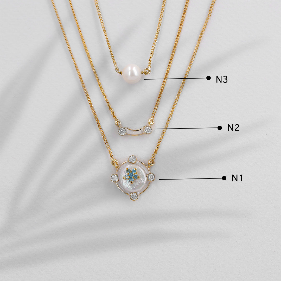 The Blue Ice blend minimalism with nature. This delicate piece boasts clear blue crystal petals and hand painted enamel around the Freshwater Coin Pearl, making it an ideal choice for those who appreciate understated style. Pair with matching earrings and complete your look.