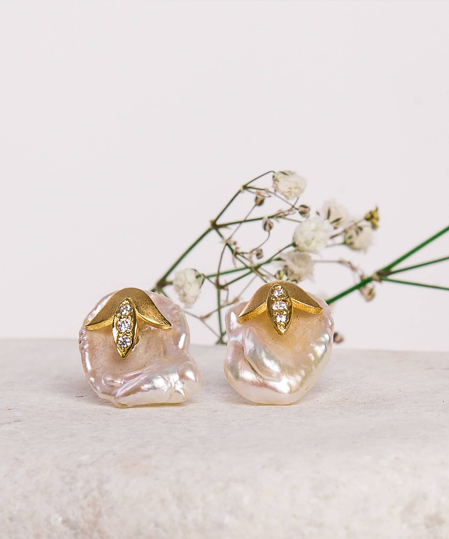 You can never go wrong with this pair of So Tulip studs. Keshi pearls infused together and topped off with zircons packaged in a tulip design.