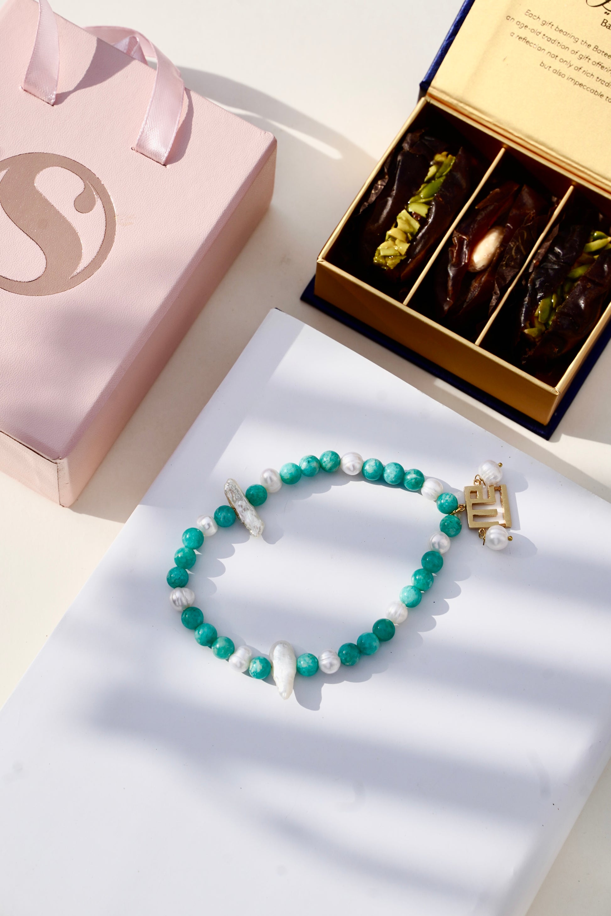 The timeless modern Kufic calligraphy art “Allah” paired with Real Freshwater Potato Pearls and Amazonite Stone will remind you of spiritual devotion and prayer. This luxury tasbeeh is perfect for personal indulgence or a thoughtful gift, a meaningful piece to be cherished for generations.