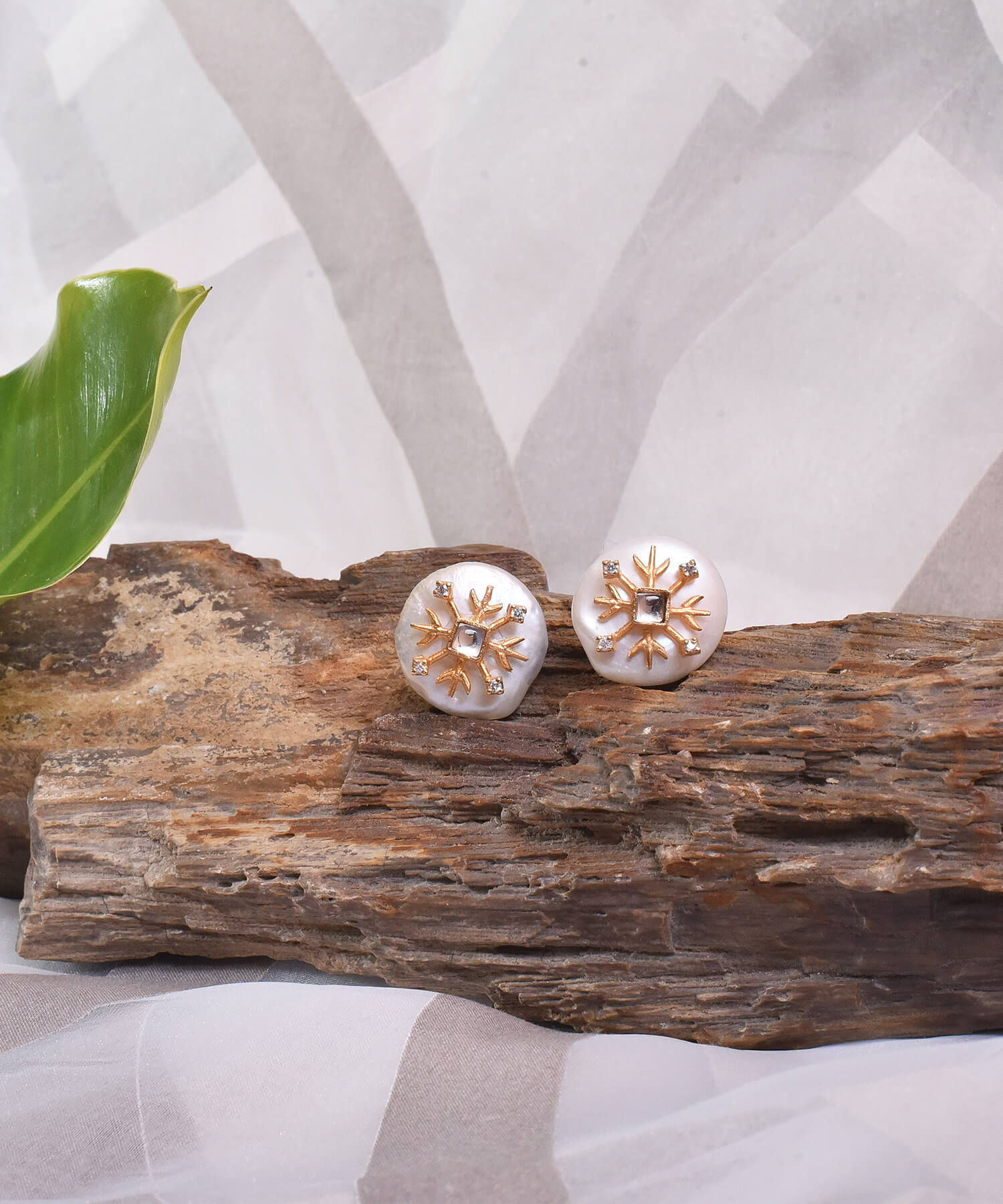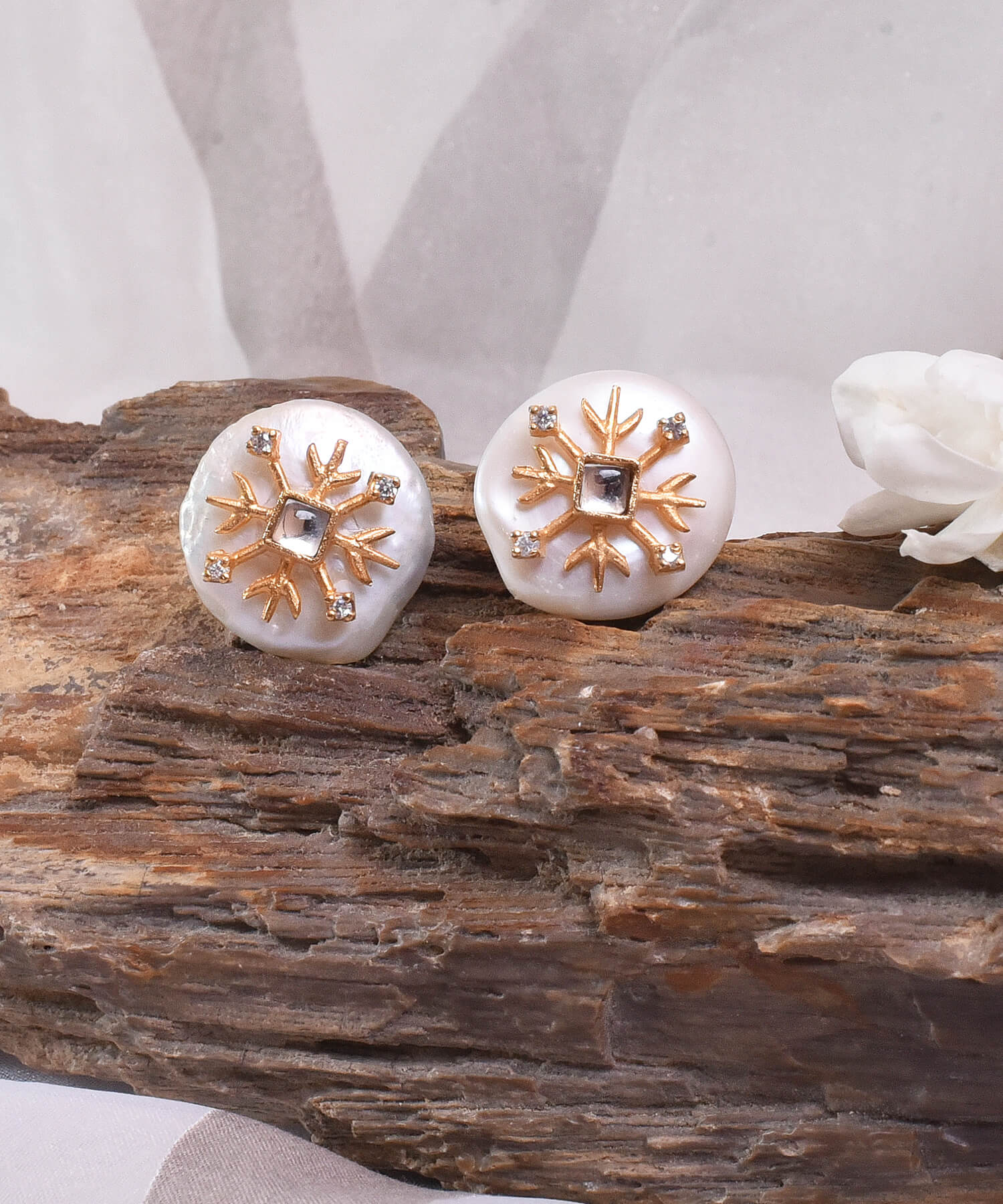 No matter what the season is, these flakes don't melt, they just give off radiance and confidence to your personality. These pearl studs with embellishments are instant classics and always in style.