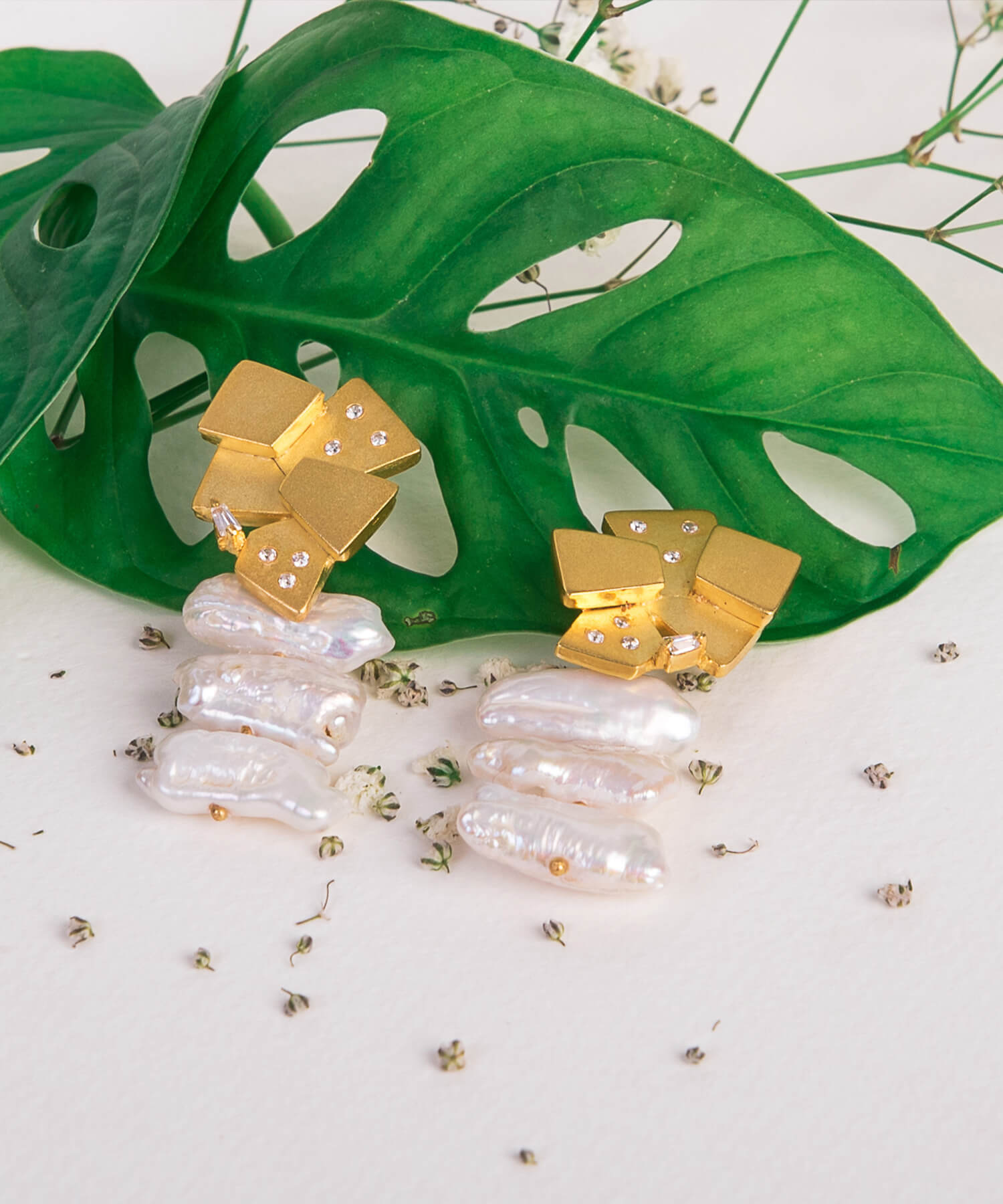 The magnificent harmonies that Harp creates would look like this pair of earrings if could see music. Synchronized Biwa Pearls with an interesting design encasing Zircon crystals is a masterpiece of it's own kind.
