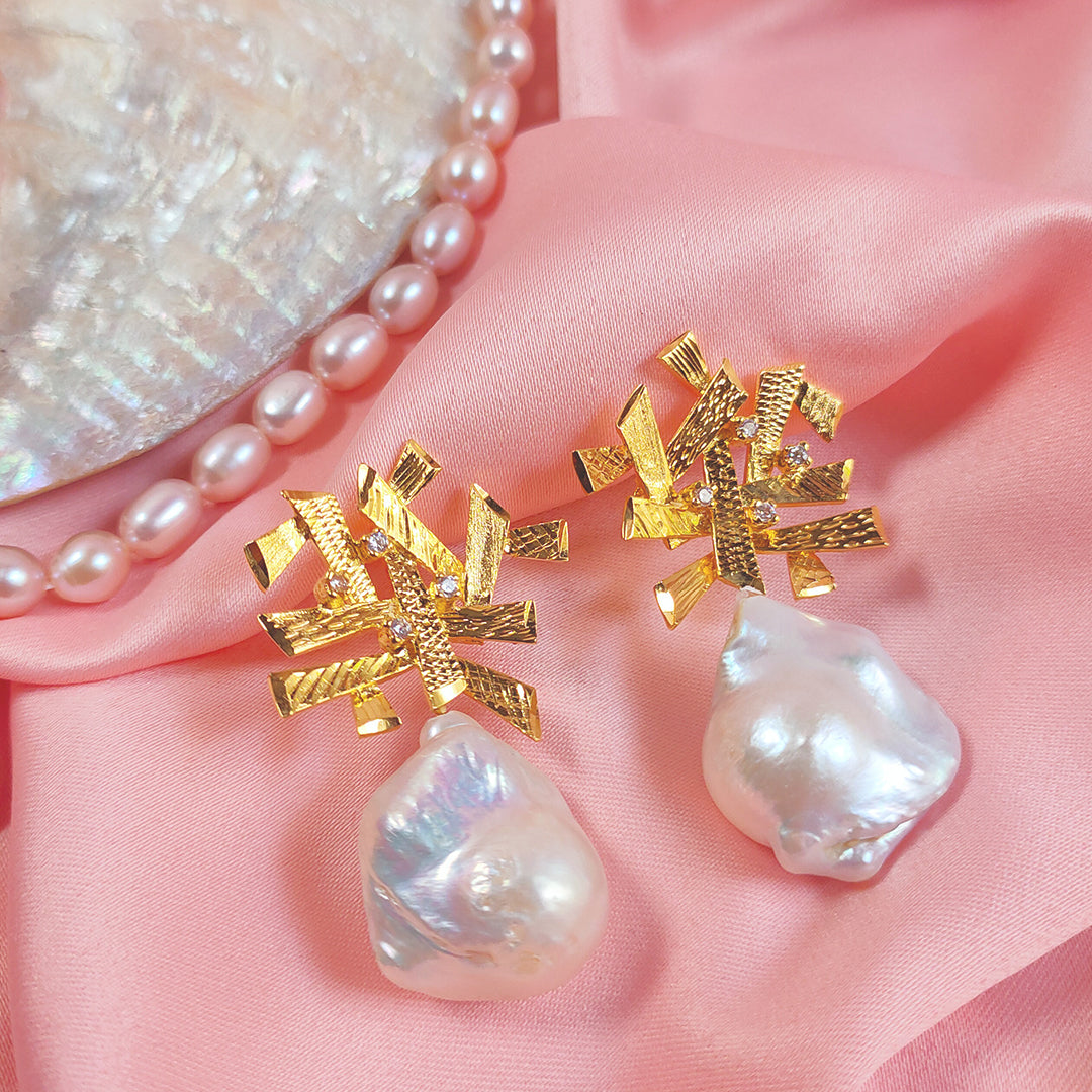 Subtle but sharp, that's how your jewelry should be. Cluster of carved gold leaves and a dangling Baroque pearl will be a sight to see when it's part of your adornment.