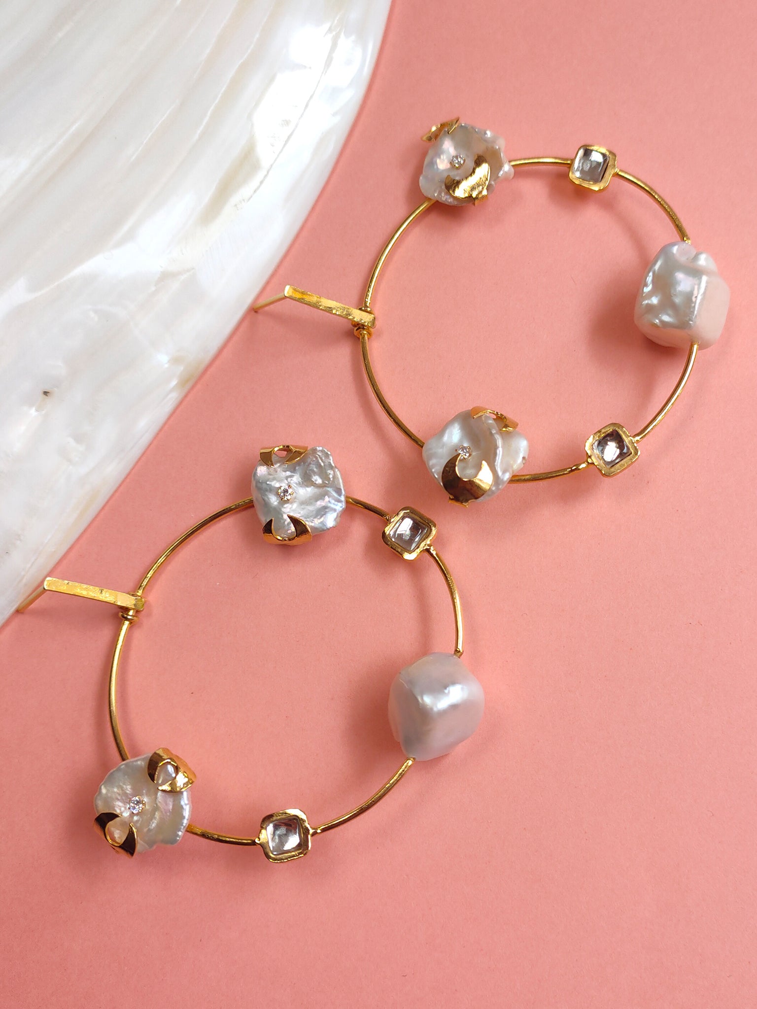 A kind of loop that you would want to be stuck in forever. This hand-crafted hoop earring with unique pearls symbolizes the bewitching beauty of a starry night.