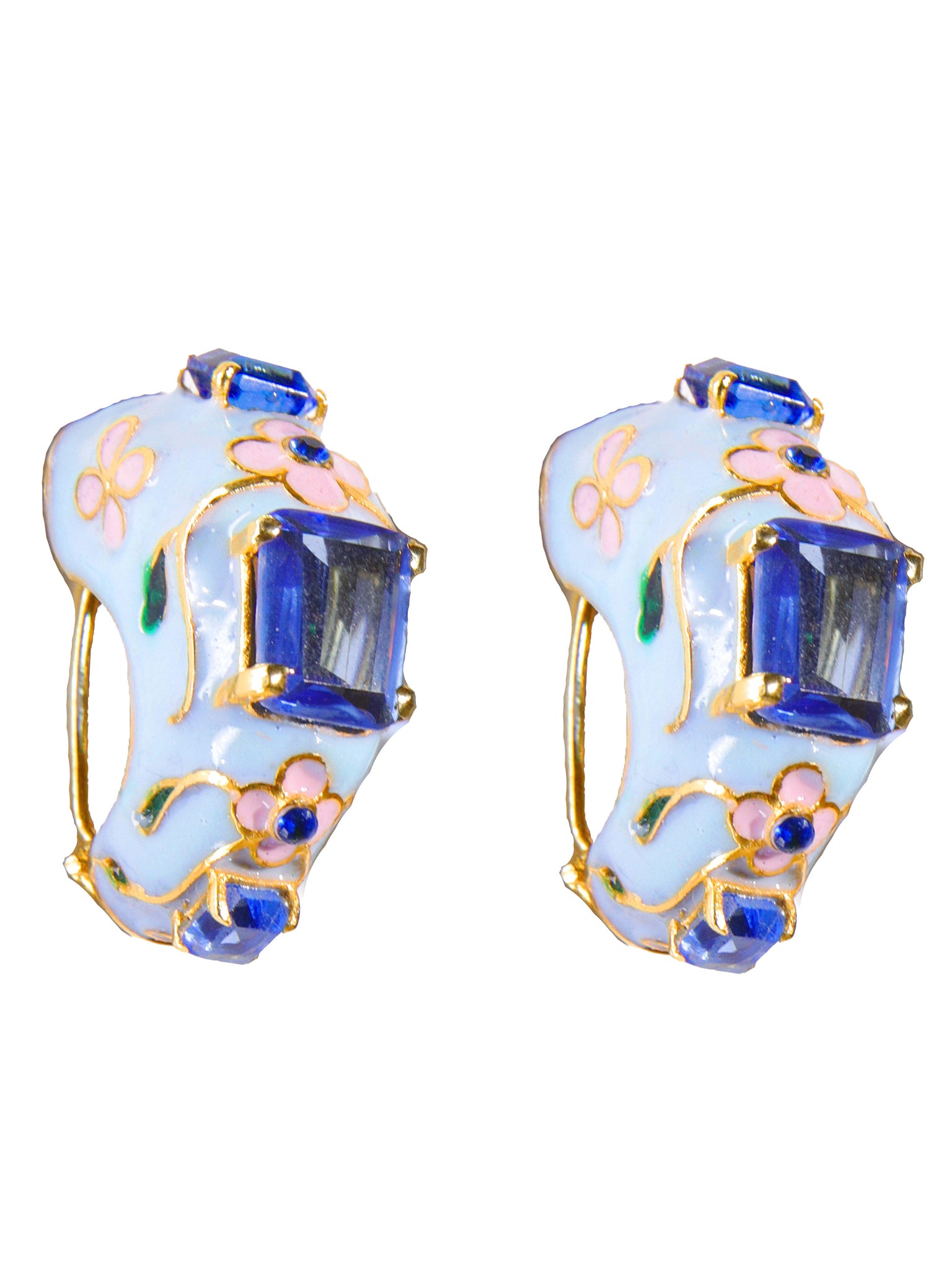 The Ilima Earrings exude refined elegance, showcasing intricate hand-painted details and a luminous finish. Their delicate design adds a touch of sophistication, making them a timeless accessory for any occasion.