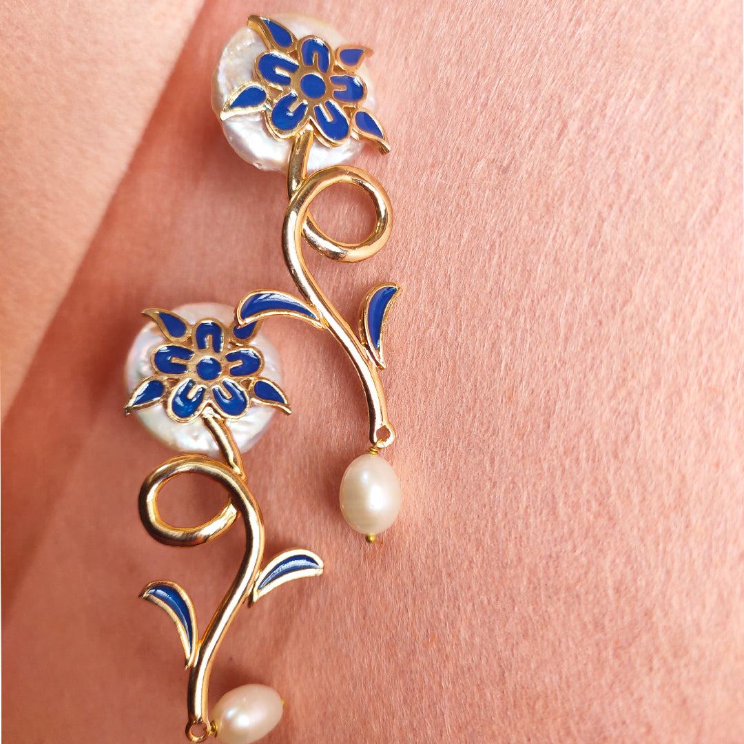 Make a memorable appearance in these stylish yet truly elegant earrings. Uniquely hand-crafted with real Freshwater Pearls and embellished with an at piece that no one can forget.