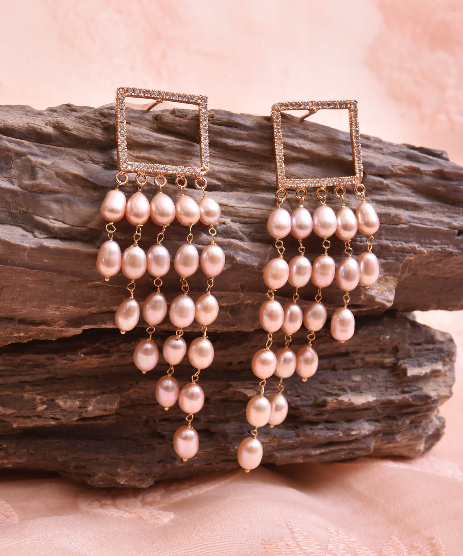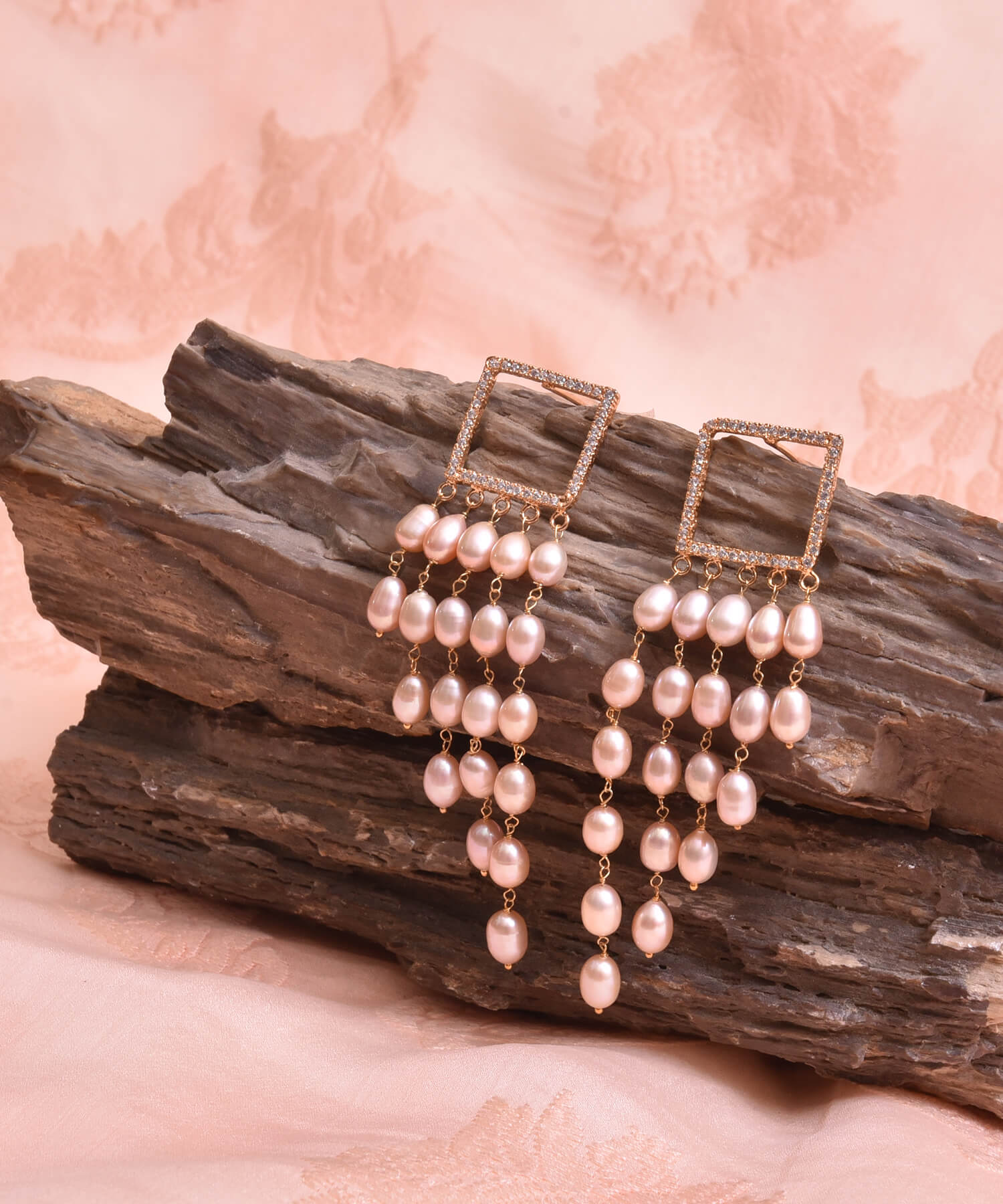 Add instant elegance and a hint of rose gold beauty to any outfit with this pair of earrings. A fleet of Rice Pearls and studded zircons are combined together to dazzle you up.