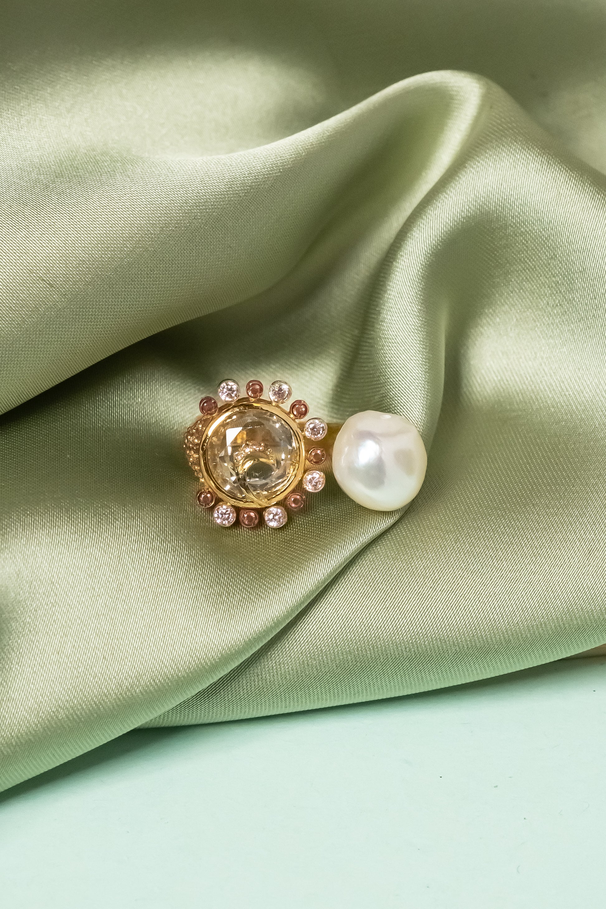 Pink Berry is all about pink and its soft shades. This illuminated ring is enough to lift up your look. The baroque pearl gives it the complete look. Compliment this with our Pink Berry earrings.