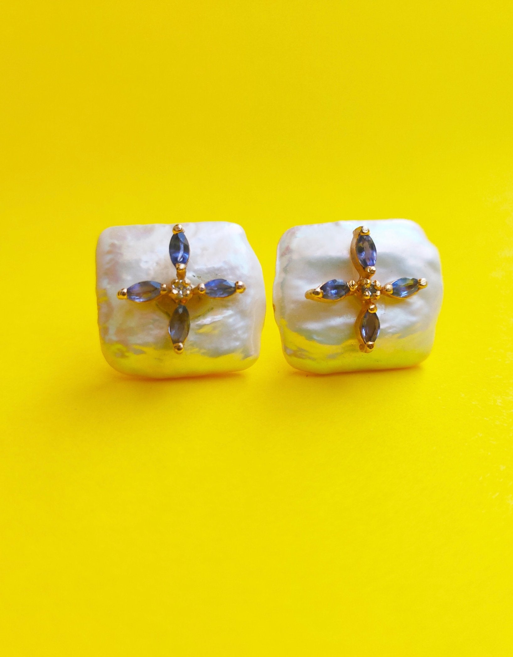 A mesmerizing pair of earrings with Natural Blue Sapphires and 21K Gold Plating. Enough to add glamour to your outfit.
