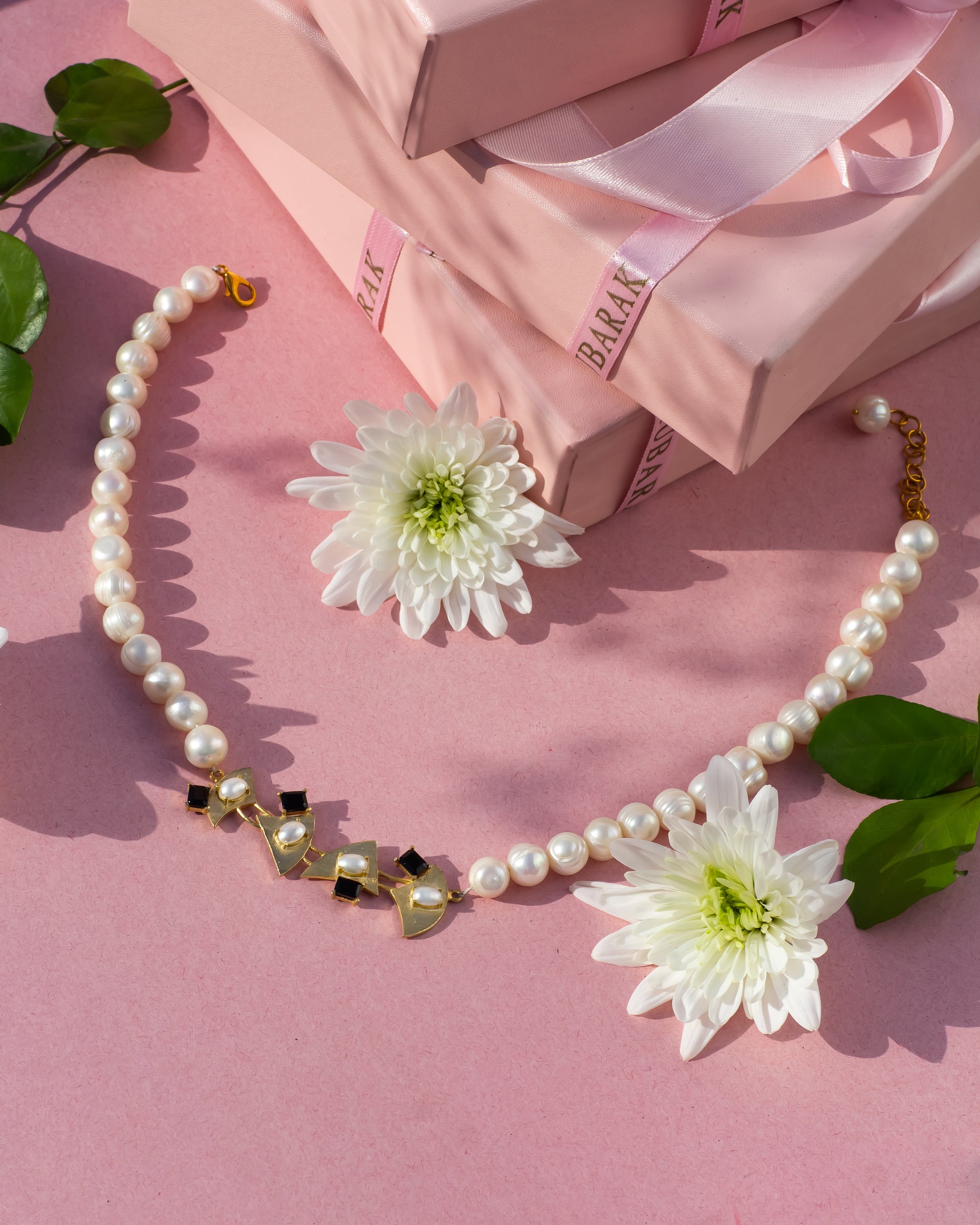 The unconventional artistic combination of Freshwater Potato Pearls and Black Onyx on a bold, edgy design creates your glamorous night look.