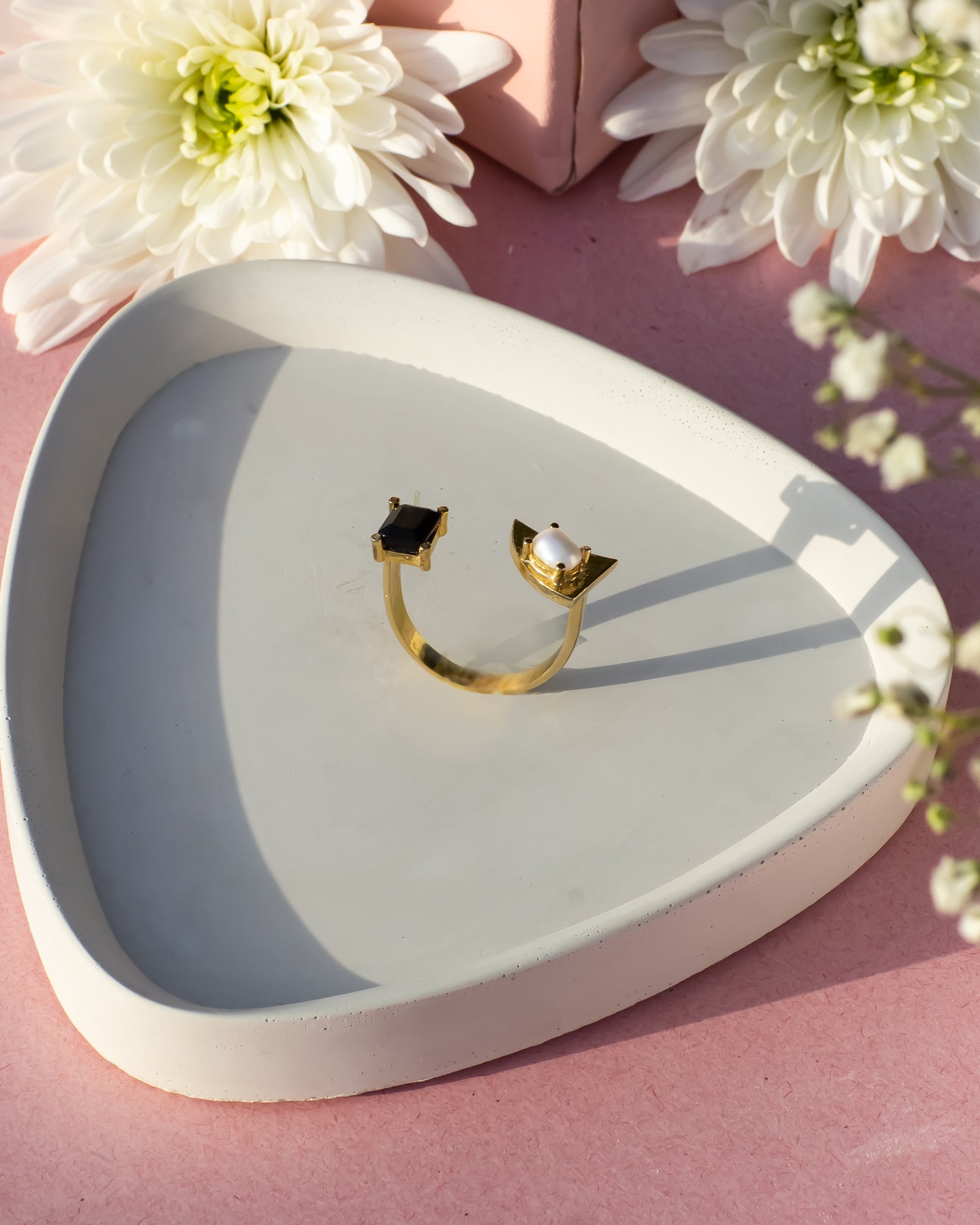 The unconventional artistic combination of Freshwater Potato Pearls and Black Onyx on a bold, edgy design. Pair it with the matching set to complete the glamorous night look.