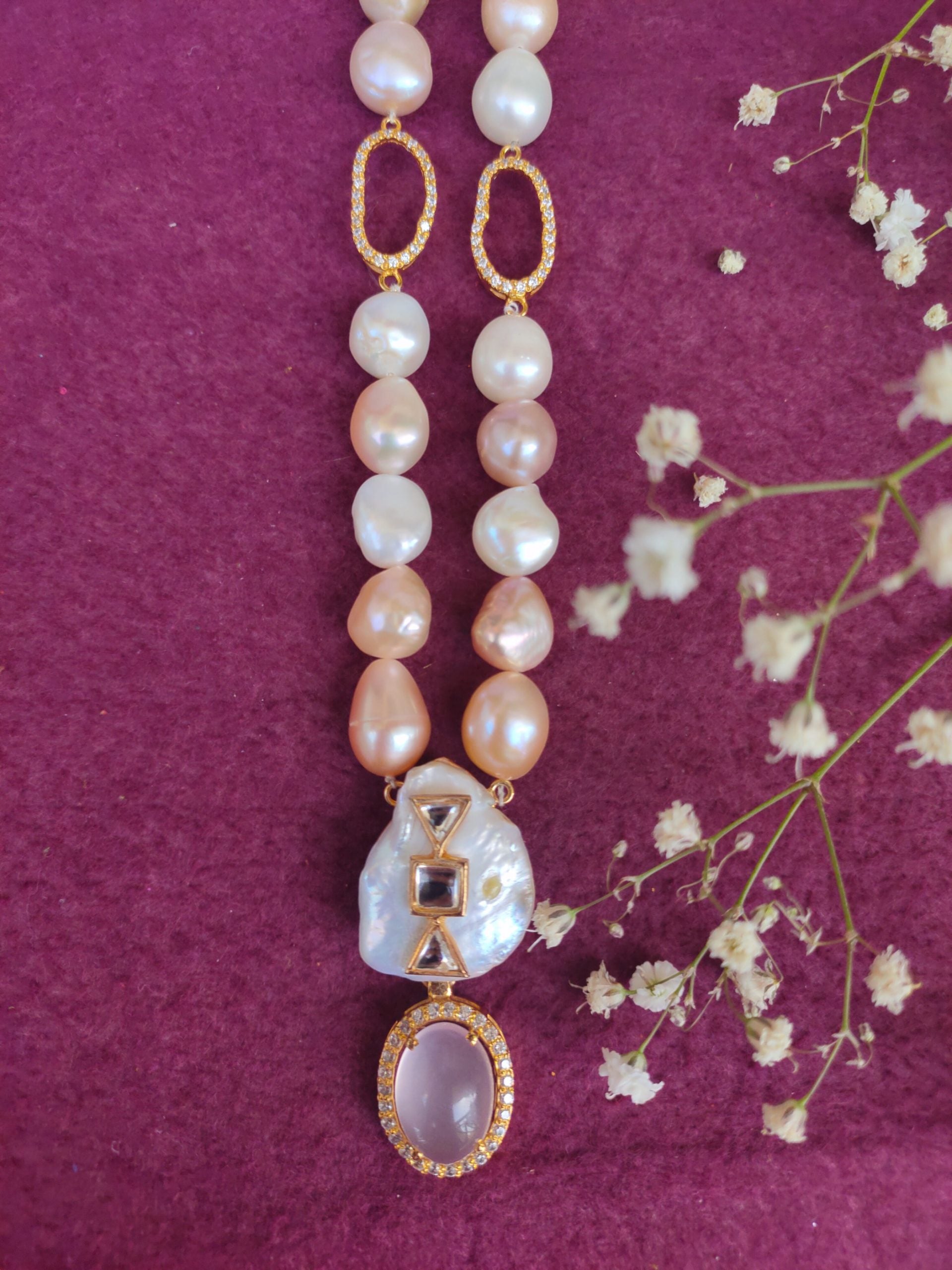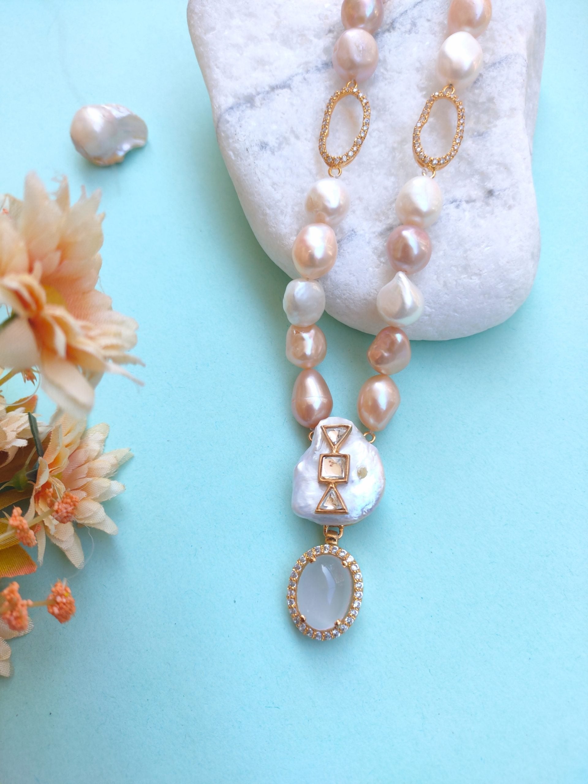 Featuring a gorgeous and classic feminie design. Our Twilight necklace is a perfect example of a timeless statement with subtle blend of different pearl shades and kundan.