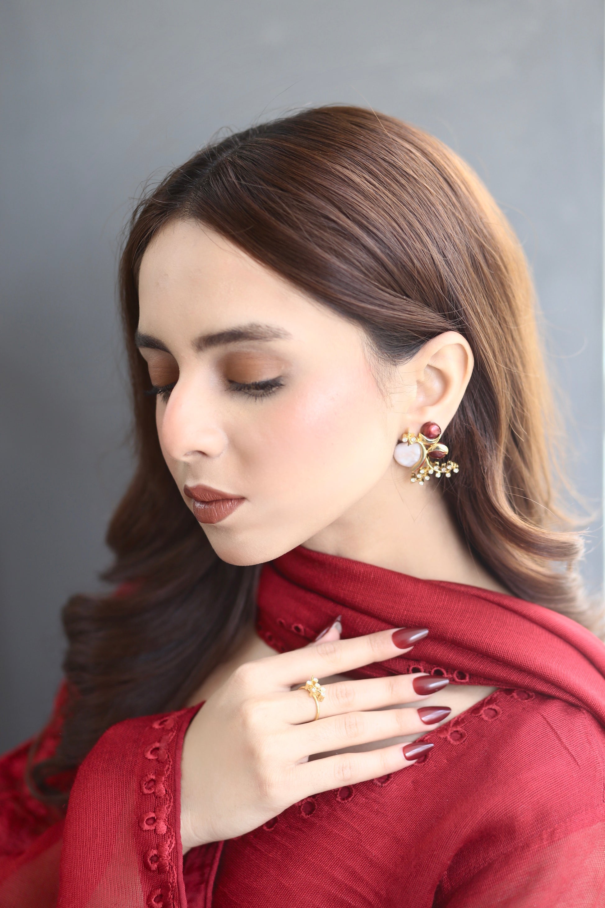 subtle glow to the hand, complementing the earrings while maintaining a soft,