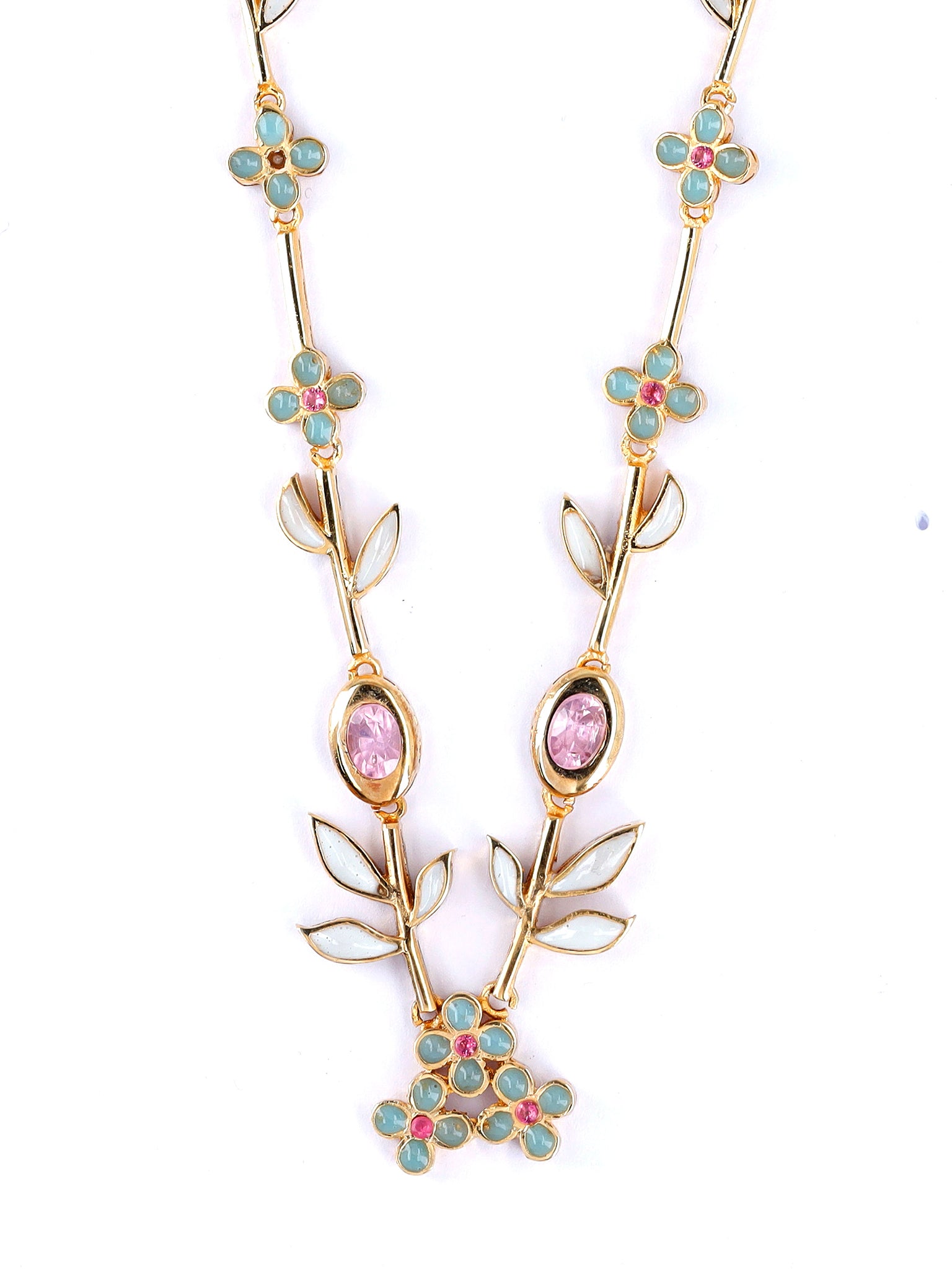 The Embelia Necklace is a masterpiece of elegance, featuring exquisite craftsmanship and timeless allure. Designed to make a statement, it effortlessly adds grace and sophistication to any look.