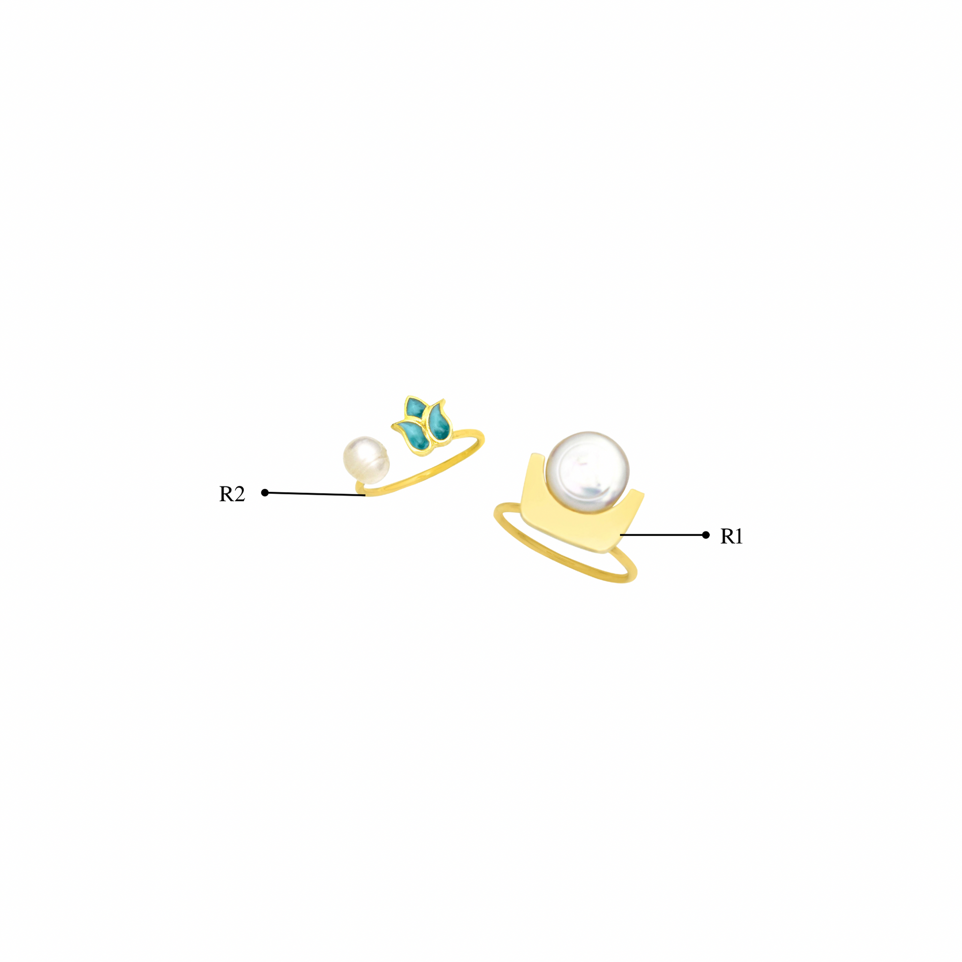 A slim gold band adorned with vibrant turquoise enamel petals and a luminous round pearl. The pearl’s soft glow beautifully balances the bold floral design, creating a delicate yet eye-catching piece.