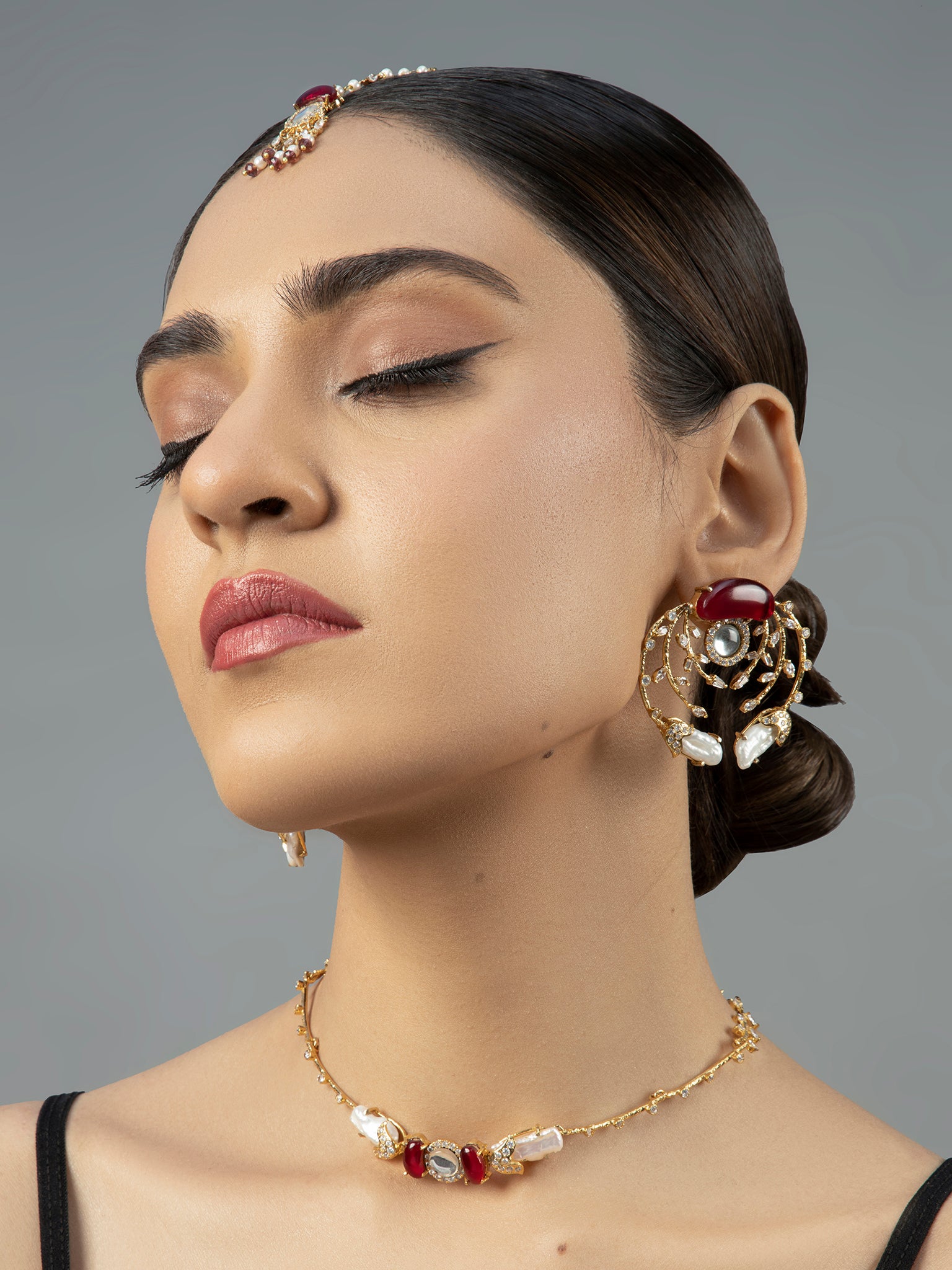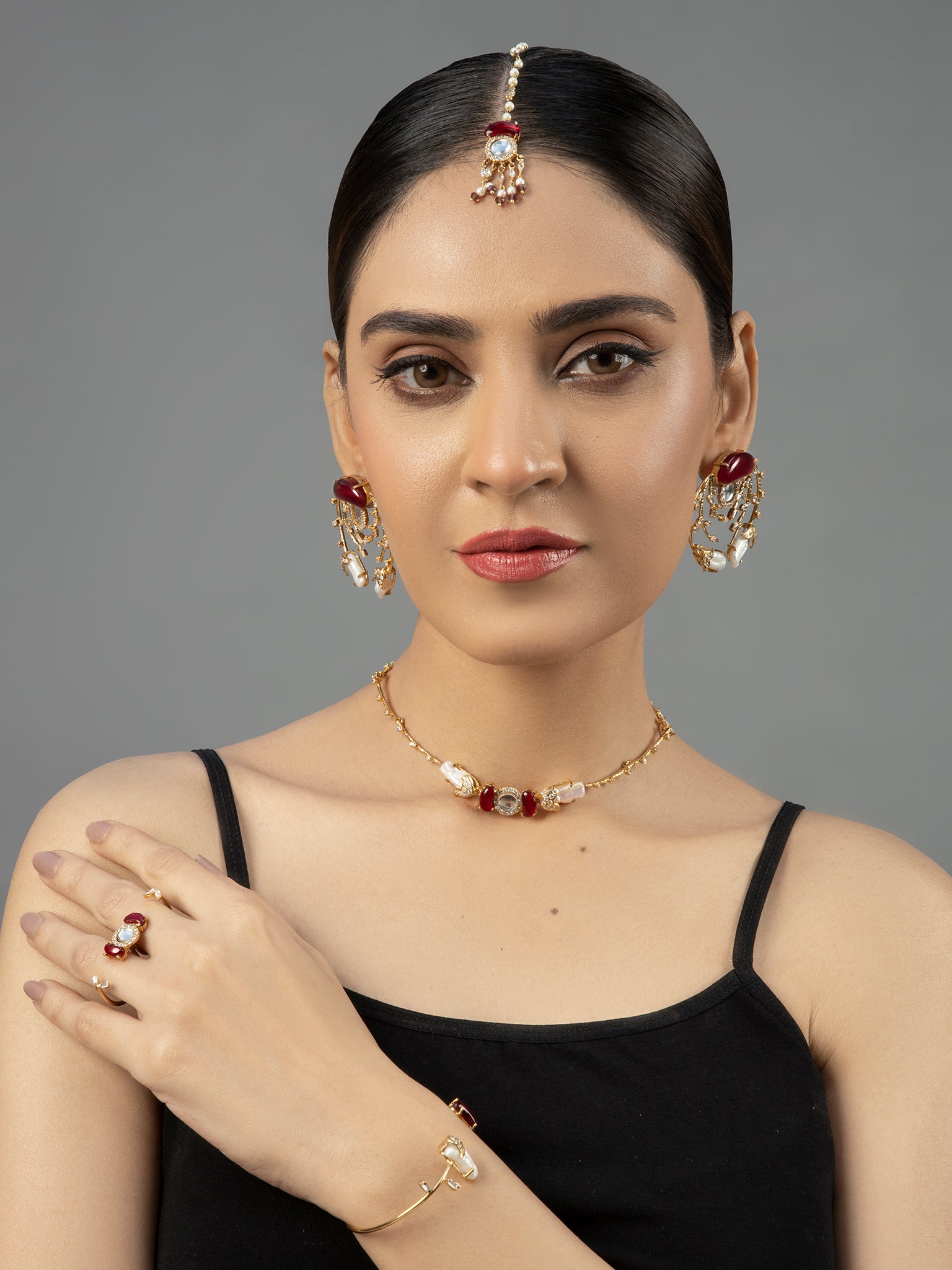 Adorn yourself in magical bliss with Red Velvet - a combination of elegance and passion. Complete your look with the matching earrings and leave a lasting impression!