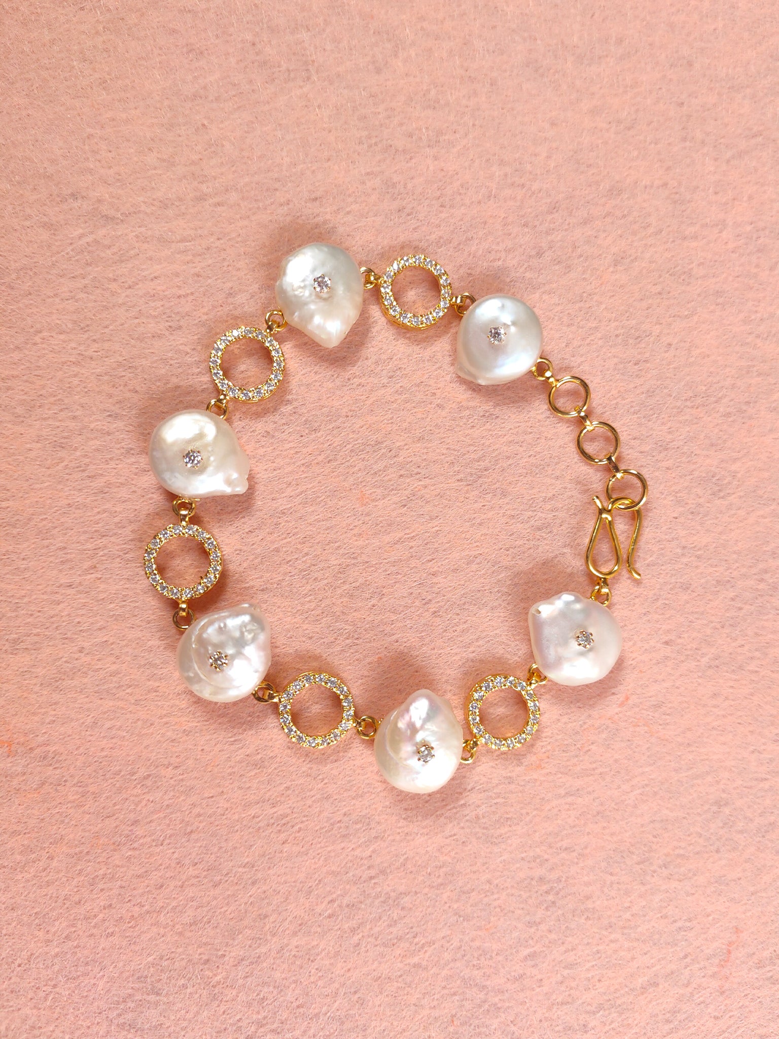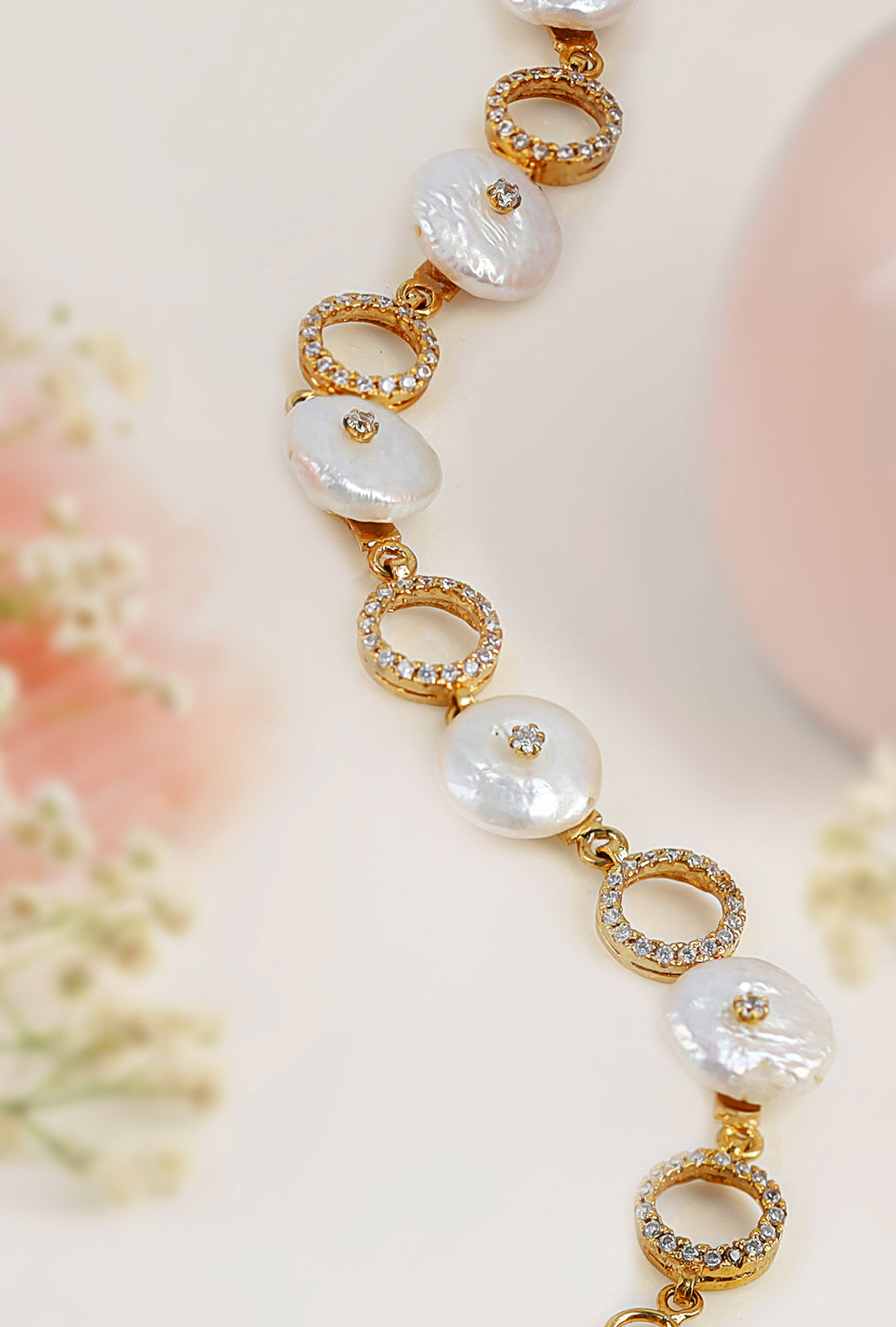 This delicate bracelet adds shine to any outfit. Featuring real freshwater drop shaped pearls alternating with  loops of zircon, giving it the perfect amount of sparkle.